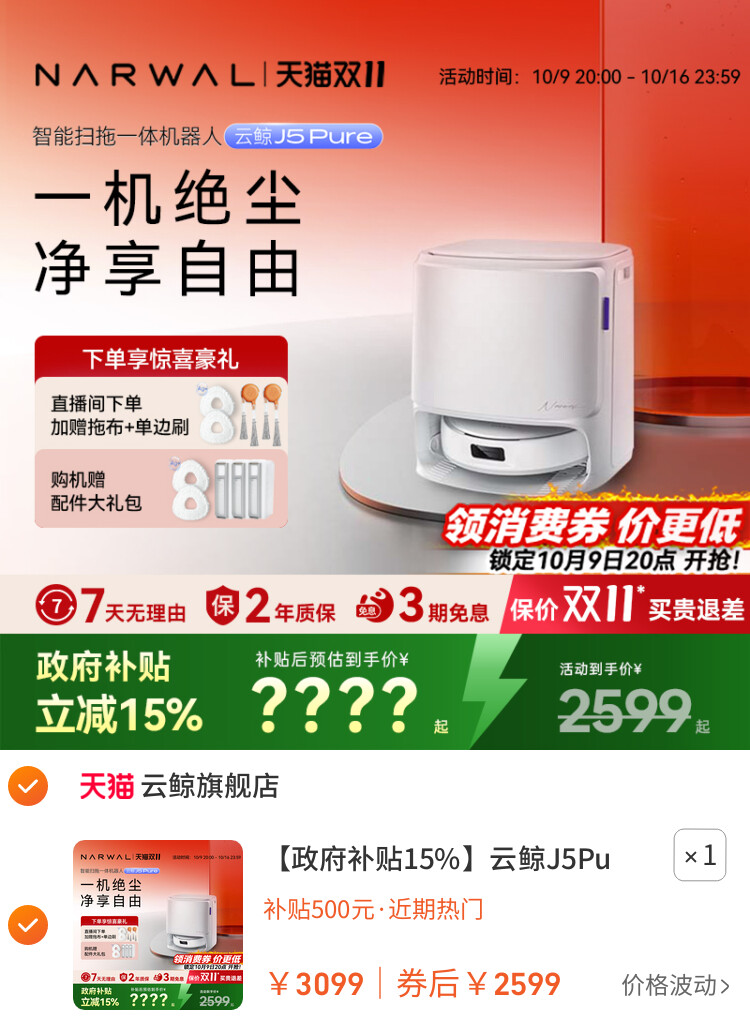 您的位置 :首页 / 优惠券 / 淘宝优惠券 【政府补贴15%】云鲸J5Pure智能扫拖一体扫地机器人0缠毛发自清洁 到手价:2599元 有效时间:长期有效 网购平台:淘宝 去购买 点击复制淘口令 【政府补贴15%】云鲸J5Pure智能扫拖一体扫地机器人0缠毛发自清洁 【推荐理由】超万人正在疯抢,同类热推 【到手价】2599.00元 【下单链接】67¥ HU287 1yXGfZ1fmif¥ https://m.tb.cn/h.Sh6OsId 【政府补贴15%】云鲸J5Pure智能扫拖一体扫地机器人0缠毛发自清洁 优惠详情 【政府补贴15%】云鲸J5Pure智能扫拖一体扫地机器人0缠毛发自清洁 【推荐理由】超万人正在疯抢,同类热推 【到手价】2599.00元 【下单链接】https://s.click.taobao.com/9vjYWJq 原图片 上一张 下一张 自动/暂停播放 相关产品 东芝冰箱【125元】优 美的冰箱【200元】优 容声【200元】优惠券 美的冰箱【375元】优 美的冰箱【350元券】 水冷式螺杆式冷水机 厂家1台包邮3hp风冷式 工业冷水机风冷式5 热门标签: 上篇:【政府补贴15%】云鲸J5Pure智能扫拖一体扫地机器人0缠毛发自清洁 下篇:【政府补贴15%】科沃斯N20/N20 PRO扫地机器人家用全自动扫拖一体 温馨提示:您可查看更多:淘宝优惠券 ,本文链接:https://www.haowubang.net//html/yhq/taobao/370.html 京东优惠券 【京东】穗宝(SYMBOL)3D山棕床垫宝耐尔弹簧床垫健脊防螨 亲爱嘚1.8米*2米(京仓闪发) 京东荣泰按摩椅A52Max款530元优惠券,最高补贴15% ASKO雅士高欧洲进口洗烘套装优惠券,10kg无胶圈门封洗衣机+10kg蝶形烘干衣机 奥克斯新款按摩椅最新优惠券领取,到手价2959元 海尔(Haier)500元优惠领取,家电国家补贴20% 小天鹅(LittleSwan)波轮洗衣机175元优惠券领取 会员充值 送月卡!夸克网盘SVIP超级会员双年卡24个月 【212元】包邮秒杀 淘金币抵扣109!爱奇艺黄金vip会员10个月 【107元】包邮秒杀 【官方直充】迅雷超级会员半年 【88元】包邮秒杀 爱奇艺vip会员白金12个月年卡 【183.93元】包邮秒杀 【69元1年】芒果TV会员年卡 券后【69元】包邮秒杀 送月卡!夸克网盘SVIP超级会员双年卡24个月 【212元】包邮秒杀 外卖券 饿了么红包节天天领红包活动 饿了么霸王餐红包,评价有礼单单返 饿了么18.8极限爆涨红包 淘宝闪购,爆品好价外卖红包 饿了么百元红包,开学饿请客 高校超吃卡