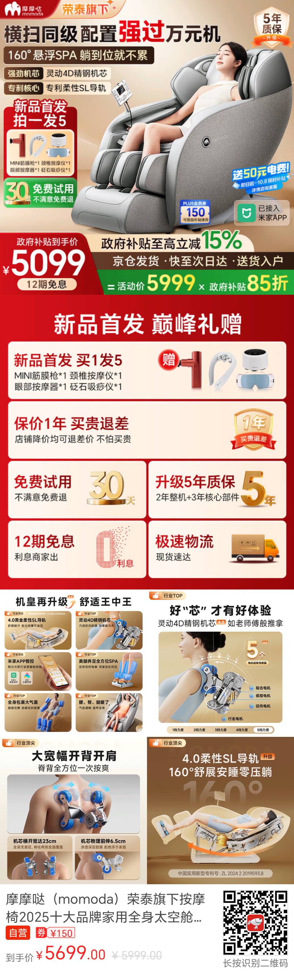 摩摩哒按摩椅M600Ultra款150元优惠券领取,可以参加国家补贴,最高补贴15%。