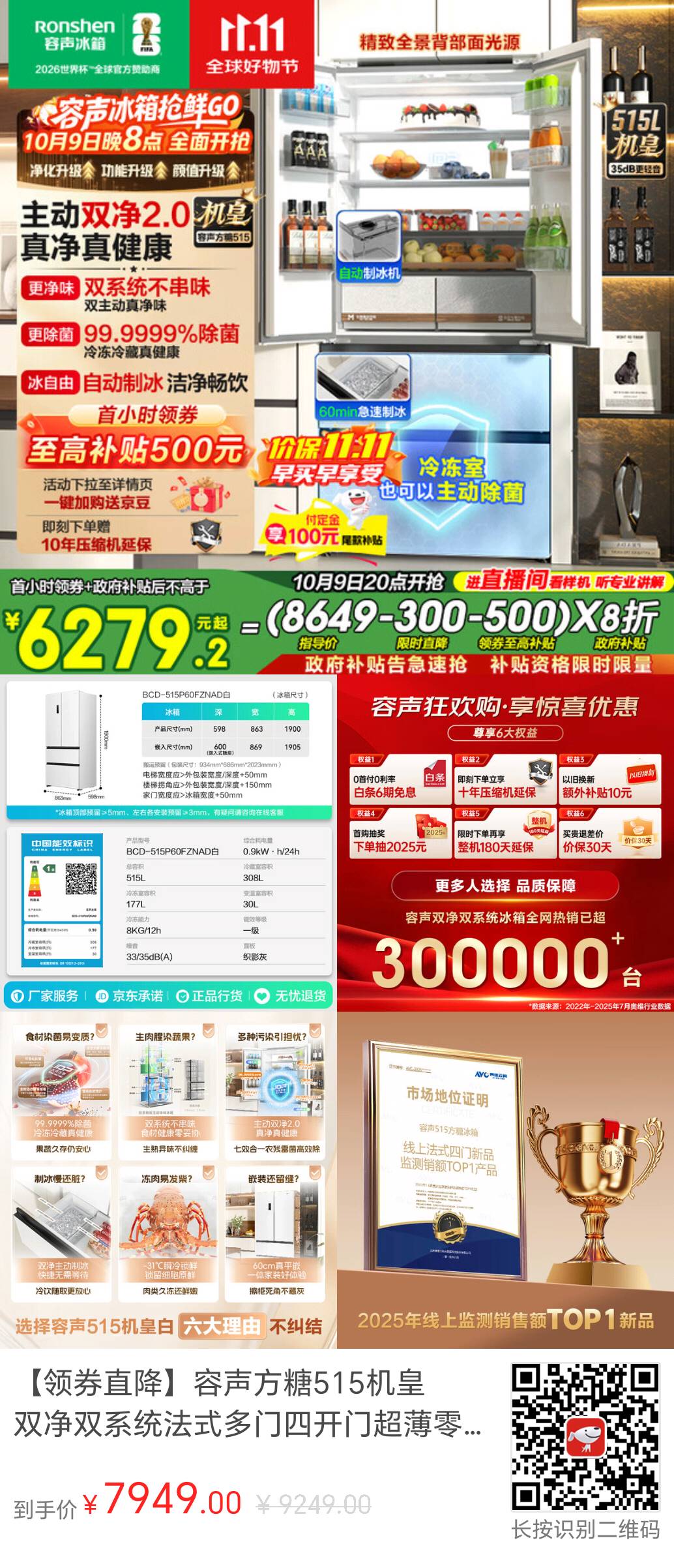 这款容声方糖515机皇双净双系统法式多门冰箱,超薄零嵌入设计,完美融入家居。京东配送,享受国家补贴,自动制冰功能让夏日清凉触手可及。