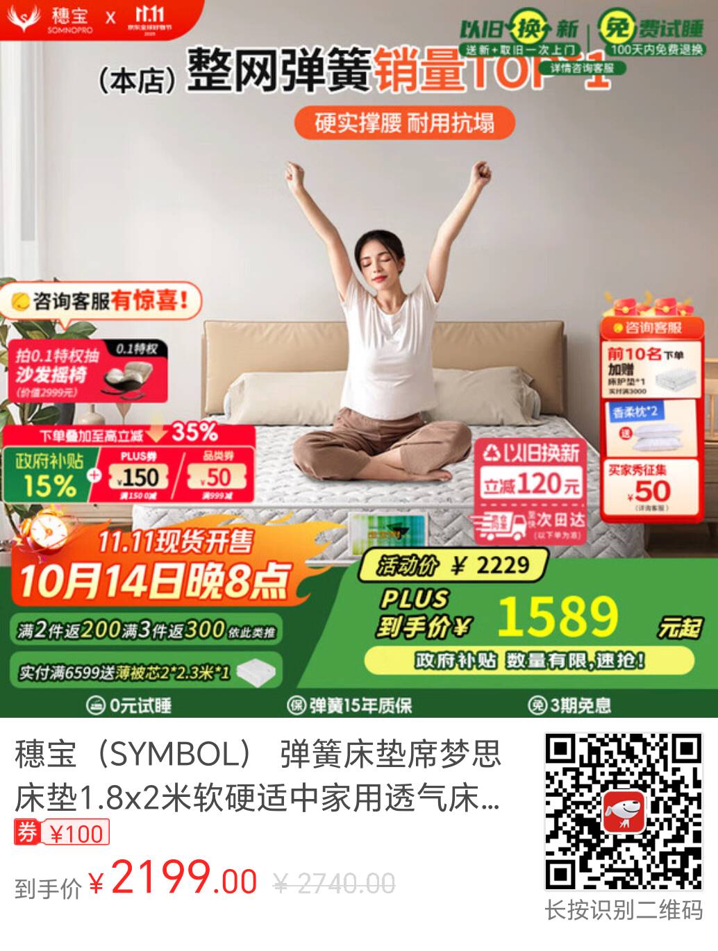您的位置 :首页 / 优惠券 / 京东优惠券 [京东]穗宝(SYMBOL) 弹簧床垫100元优惠券 到手价:2740元 有效时间:长期有效 网购平台:京东 去购买 点击复制京口令 16:/穗宝(SYMBOL) 弹簧床垫席梦思床垫1.8x2米软硬适中家用透气床垫子 贝妃 贝妃【基础偏硬】20cm 1.8米*2米,⇶⤴️īng►涷¥T0Dn35ryYvRwJ2Hf¥ MF5681 优惠详情 【京东】穗宝(SYMBOL) 弹簧床垫席梦思床垫1.8x2米软硬适中家用透气床垫子 贝妃 贝妃【基础偏硬】20cm 1.8米*2米 优惠券信息:2740-441(促销)-100(优惠券)=2199元 优惠券:100元(满1699可用) ——————— 京东价:¥2740.00 到手价:¥2199.00 ——————— 领券抢购:https://u.jd.com/06eYhFt 优惠券链接:领券 推荐理由: 睡眠新体验,来自穗宝弹簧床垫! 原图片 上一张 下一张 自动/暂停播放 相关产品 【京东】穗宝(SYMB [京东]穗宝(SYMBOL) 【京东】TCL京东联名 【京东】格力(GREE) 【京东】华凌空调 大 【京东】格力空调 【京东】华凌空调 大 LG83英寸OLED巨幕电视机 热门标签: 穗宝床垫 上篇:【京东】TCL京东联名大1.5匹新一级能效真省电SE挂机空调冷暖变频KFR-35GW/JD21+B1国家补贴以旧换新 下篇:【京东】穗宝(SYMBOL)3D山棕床垫宝耐尔弹簧床垫健脊防螨 亲爱嘚1.8米*2米(京仓闪发) 温馨提示:您可查看更多:京东优惠券 ,本文链接:https://www.haowubang.net//html/yhq/jingdong/815.html 淘宝优惠券 飞鹤经典1962中老年奶粉高钙多维成人奶粉900g*2罐营养冲饮送长辈 【政府补贴】穗宝椰棕硬垫乳胶弹簧席梦思1.8米双人家用床垫经典 慕思官方十大名牌铂尔曼五星级酒店同款天然乳胶弹簧床垫慕斯双人 【政府补贴20%】奥克斯按摩椅家用全身电动多功能太空舱1701 【新品首.发】统帅懒人新风空调 券后【2799元】包邮秒杀 海信KELON空调静省电大2匹家用客厅挂机50QY 【1947.2元】包邮秒杀 会员充值 送月卡!夸克网盘SVIP超级会员双年卡24个月 【212元】包邮秒杀 淘宝秒杀:【学生专享卡45】腾讯视频VIP会员三个月 福利价仅45元秒杀 【69元1年】优酷会员vip12个月年卡 券后【69元】包邮秒杀 淘金币抵扣14.6!爱奇艺vip黄金会员月卡 【14.6元】包邮秒杀 淘金币抵扣109!爱奇艺黄金vip会员10个月 【107元】包邮秒杀 优质素材:芒果/优酷年卡会员仅需57 福利价仅57元秒杀! 本地生活 库迪咖啡在线点餐送优惠券,全场6折起 奈雪的茶优惠券领取,在线点餐享受8.8折哦 必胜客在线点餐点餐最低7折优惠券领取 星巴克优惠券领取,在线点餐8折优惠 华莱士在线点餐、低至6折起 百果园水果外送,满49元包邮,全场优惠9折起 喜茶优惠券领取,在线点餐全场9.5折 连锁餐饮优惠券,最低五折起 瑞幸咖啡在线点餐优惠券,全场饮品5.5折起 肯德基优惠券领取,在线点餐最低5折 >