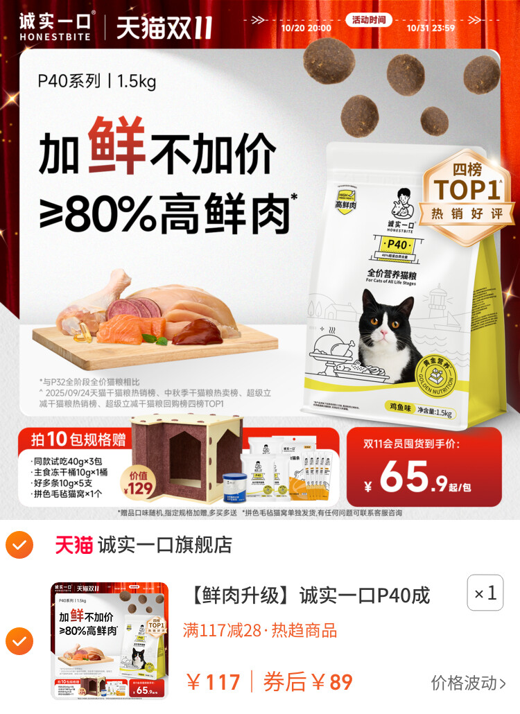 您的位置 :首页 / 优惠券 / 淘宝优惠券 【28元券】诚实一口P40成猫粮PLUS冻干双拼乳鸽肠胃幼猫粮1.5kg 到手价:89元 有效时间:长期有效 网购平台:淘宝 去购买 点击复制淘口令 【鲜肉升级】诚实一口P40成猫粮PLUS冻干双拼乳鸽肠胃幼猫粮1.5kg 【推荐理由】历史热推,全网爆款 【券面额】28元 【到手价】89.00元 【下单链接】39¥ CA381 4X2yfcAsCVl¥ https://m.tb.cn/h.SjUgCBZ 【鲜肉升级】诚实一口P40成猫粮PLUS冻干双拼乳鸽肠胃幼猫粮1.5kg 优惠详情 【鲜肉升级】诚实一口P40成猫粮PLUS冻干双拼乳鸽肠胃幼猫粮1.5kg 【推荐理由】历史热推,全网爆款 【券面额】28元 【到手价】89.00元 【下单链接】https://s.click.taobao.com/7Ou1aAq 原图片 上一张 下一张 自动/暂停播放 相关产品 荣泰A39砂色按摩椅京 摩摩哒 M613 PRO 家用智 丝飘乳霜纸新生儿宝 维达抽纸24包棉韧压花 卡其猫馥桂兰馨24包商 漫花大包抽纸家用实 【李昀锐同款】清风 活力28香氛洗衣液留香 热门标签: 优惠券猫粮 上篇:弗列加特低温烘焙鲜肉主食猫粮【50元券】幼老猫咪专用 下篇:欧莱雅洗发水护发素玻尿酸控油蓬松生姜强韧活力姜大金瓶柔顺顺滑 温馨提示:您可查看更多:淘宝优惠券 ,本文链接:https://www.haowubang.net//html/yhq/taobao/1188.html 京东优惠券 荣泰(RONGTAI)【补贴15%】按摩椅家用全身按摩太空舱全自动按摩沙发椅送老人礼物S56PRO S56PRO杏仁灰 松下10公斤波轮洗衣机,到手仅1266元 Vertica按摩器 咖博士(Dr.coffee)全自动咖啡机 创维电视100A5D Pro 100英寸电视机500元优惠券,补贴最高20% 何佳功家庭KTV音响套装唱歌全套设备卡拉OK商用K歌音箱 会员充值 送月卡!夸克网盘SVIP超级会员双年卡24个月 【212元】包邮秒杀 送双周卡!夸克网盘SVIP超级会员12个月 【112元】包邮秒杀 淘宝秒杀:【学生专享卡45】腾讯视频VIP会员三个月 福利价仅45元秒杀 限购1件网易云音乐黑胶SVIP会员年卡 【96元】包邮秒杀 下拉详情下单!腾讯视频VIP会员12个月 券后【150.32元】包邮秒 淘金币抵扣109!爱奇艺黄金vip会员10个月 【107元】包邮秒杀 外卖券 饿了么红包节天天领红包活动 饿了么霸王餐红包,评价有礼单单返 闪购新用户可领首单免单福利 淘宝闪购,爆品好价外卖红包 淘宝闪购红包,领最高15元大额红包