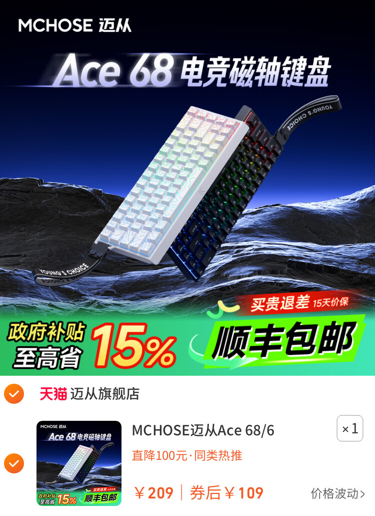 MCHOSE迈从Ace 68/60磁轴机械键盘Pro游戏电竞专用台式电脑客制化