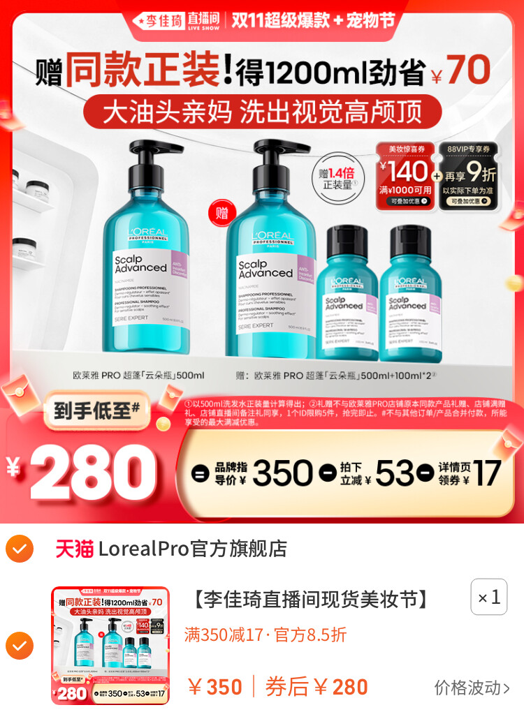 您的位置 :首页 / 优惠券 / 淘宝优惠券 【李佳琦直播间现货美妆节】欧莱雅PRO视觉高颅顶云朵瓶洗发水* 到手价:280元 有效时间:长期有效 网购平台:淘宝 去购买 点击复制淘口令 【李佳琦直播间现货美妆节】欧莱雅PRO视觉高颅顶云朵瓶洗发水* 【推荐理由】热门商品 【券面额】17元 【到手价】280.00元 【下单链接】69¥ HU591 IzhPfW1rnnE¥ https://m.tb.cn/h.S9m2kOZ 【李佳琦直播间现货美妆节】欧莱雅PRO视觉高颅顶云朵瓶洗发水* 优惠详情 【李佳琦直播间现货美妆节】欧莱雅PRO视觉高颅顶云朵瓶洗发水* 【推荐理由】热门商品 【券面额】17元 【到手价】280.00元 【下单链接】https://s.click.taobao.com/bTSuAup 原图片 上一张 下一张 自动/暂停播放 相关产品 荣泰A39砂色按摩椅京 摩摩哒 M613 PRO 家用智 丝飘乳霜纸新生儿宝 维达抽纸24包棉韧压花 卡其猫馥桂兰馨24包商 漫花大包抽纸家用实 【李昀锐同款】清风 活力28香氛洗衣液留香 热门标签: 欧莱雅洗发水 上篇:【天猫U先】百菲酪水牛纯牛奶200ml*1盒(仅限U先活动会员试用 下篇:【李佳琦直播间超级爆款+宠物节】^卡诗双重净油洗发水无硅油* 温馨提示:您可查看更多:淘宝优惠券 ,本文链接:https://www.haowubang.net//html/yhq/taobao/1891.html 京东优惠券 荣泰(RONGTAI)【补贴15%】按摩椅家用全身按摩太空舱全自动按摩沙发椅送老人礼物S56PRO S56PRO杏仁灰 创维电视100A5D Pro 100英寸电视机500元优惠券,补贴最高20% 松下10公斤波轮洗衣机,到手仅1266元 何佳功家庭KTV音响套装唱歌全套设备卡拉OK商用K歌音箱 咖博士(Dr.coffee)全自动咖啡机 Vertica按摩器 会员充值 送月卡!夸克网盘SVIP超级会员双年卡24个月 【212元】包邮秒杀 送双周卡!夸克网盘SVIP超级会员12个月 【112元】包邮秒杀 限购1件网易云音乐黑胶SVIP会员年卡 【96元】包邮秒杀 淘金币抵扣109!爱奇艺黄金vip会员10个月 【107元】包邮秒杀 下拉详情下单!腾讯视频VIP会员12个月 券后【150.32元】包邮秒 淘宝秒杀:【学生专享卡45】腾讯视频VIP会员三个月 福利价仅45元秒杀 外卖券 淘宝闪购,爆品好价外卖红包 饿了么红包节天天领红包活动 饿了么霸王餐红包,评价有礼单单返 淘宝闪购红包,领最高15元大额红包 闪购新用户可领首单免单福利