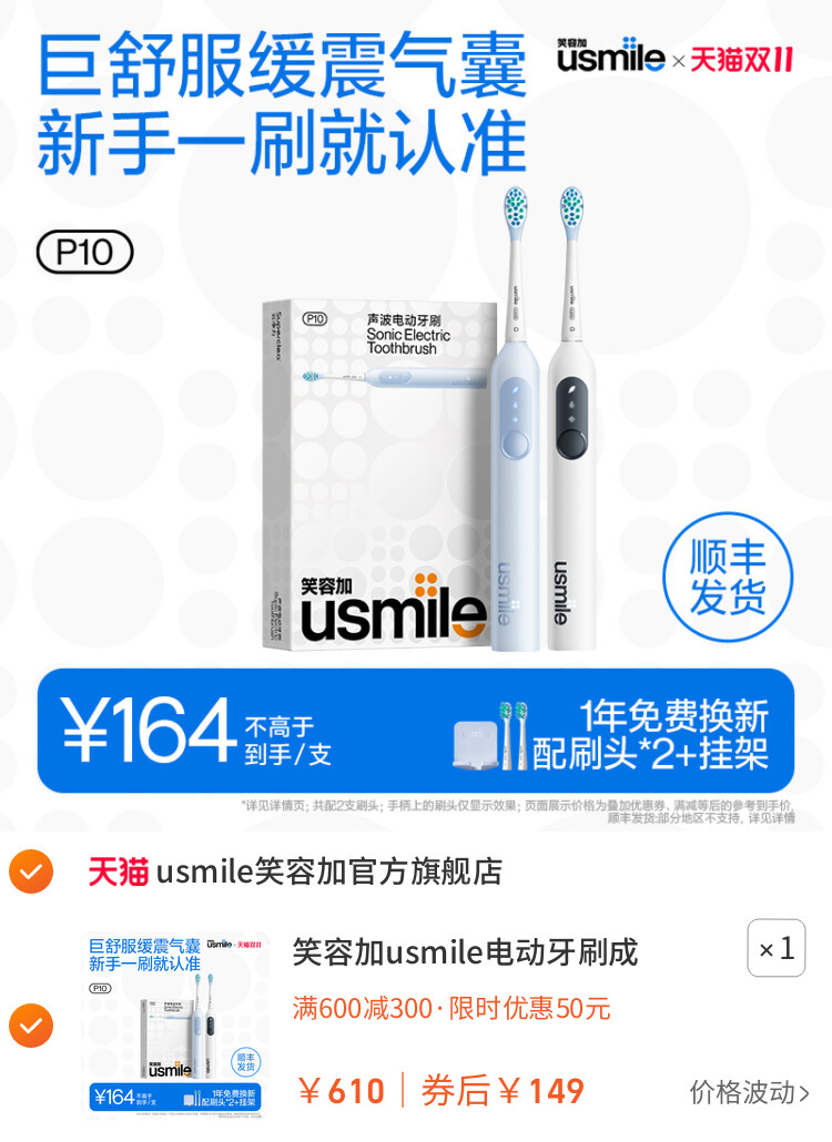 您的位置 :首页 / 优惠券 / 淘宝优惠券 笑容加usmile电动牙刷成人全自动情侣款套装微笑男女生日礼物P10 到手价:149元 有效时间:长期有效 网购平台:淘宝 去购买 点击复制淘口令 笑容加usmile电动牙刷成人全自动情侣款套装微笑男女生日礼物P10 【推荐理由】热趋商品,超十万人正在疯抢 【券面额】300元 【到手价】149.00元 【下单链接】37¥ CZ007 MTwDfW1zPyW¥ https://m.tb.cn/h.S9m76nX 笑容加usmile电动牙刷成人全自动情侣款套装微笑男女生日礼物P10 优惠详情 笑容加usmile电动牙刷成人全自动情侣款套装微笑男女生日礼物P10 【推荐理由】热趋商品,超十万人正在疯抢 【券面额】300元 【到手价】149.00元 【下单链接】https://s.click.taobao.com/hP5UAup 原图片 上一张 下一张 自动/暂停播放 相关产品 德国wigomat唯咖美半自 意大利Quick Mill进口 【焕新补贴】格米莱 [纯平全嵌]小天鹅本色 新品IQ500 西门子 小幸 [政府补贴不限区域 [纯平全嵌]小天鹅小蓝 海信电视E7Q 100英寸 热门标签: 电动牙刷 上篇:小米智能摄像机云台版监控家用手机远程无线网络摄像头360全景 下篇:【香菇双十一】清风抽纸金装80抽60包+卡皮巴拉90抽20包 温馨提示:您可查看更多:淘宝优惠券 ,本文链接:https://www.haowubang.net//html/yhq/taobao/1894.html 京东优惠券 【京东】穗宝(SYMBOL)3D山棕床垫宝耐尔弹簧床垫健脊防螨 亲爱嘚1.8米*2米(京仓闪发) 西屋(Westinghouse)S570按摩椅150元优惠券+最高补贴115% 京东荣泰按摩椅A52Max款530元优惠券,最高补贴15% 慕思乳进口胶床垫300元优惠券领取,还可以享受国家补贴85折 小天鹅(LittleSwan)波轮洗衣机175元优惠券领取 京东奥佳华按摩椅优惠券300元领取,最高补贴15% 会员充值 送月卡!夸克网盘SVIP超级会员双年卡24个月 【212元】包邮秒杀 淘金币抵扣14.6!爱奇艺vip黄金会员月卡 【14.6元】包邮秒杀 送月卡!夸克网盘SVIP超级会员双年卡24个月 【212元】包邮秒杀 【69元1年】优酷会员vip12个月年卡 券后【69元】包邮秒杀 【69元1年】优酷会员vip12个月年卡 券后【69元】包邮秒杀 淘金币抵扣109!爱奇艺黄金vip会员10个月 【107元】包邮秒杀 外卖券 饿了么红包节天天领红包活动 淘宝闪购红包,领最高15元大额红包 饿了么霸王餐红包,评价有礼单单返 饿了么18.8极限爆涨红包 饿了么外卖红包,社群专享,9.9元吃饱喝足