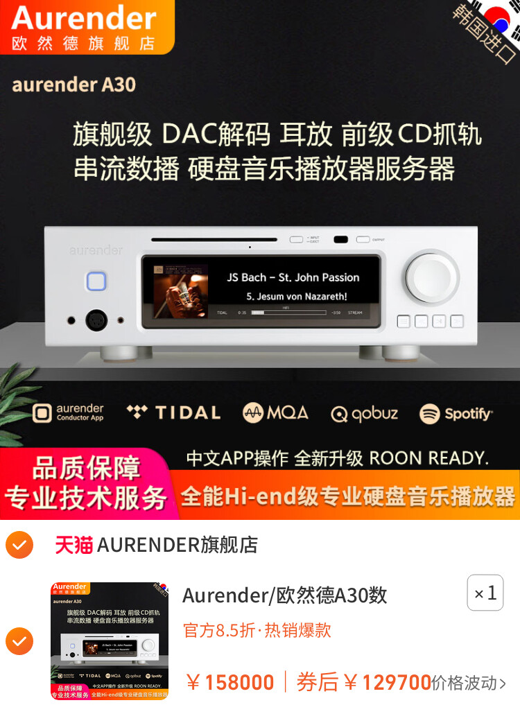 Aurender/欧然德A30数播串流CD抓轨DAC解码器前级耳放音乐播放器