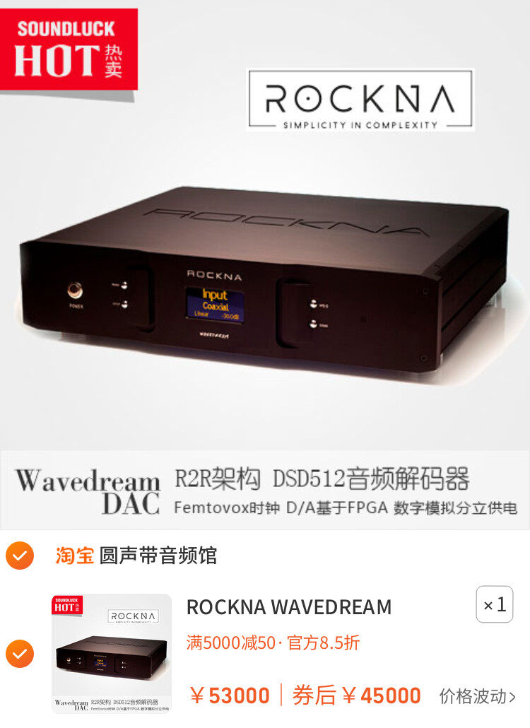 ROCKNA WAVEDREAM DAC新版R2R架构音频DAC解码器DSD512圆声带行货