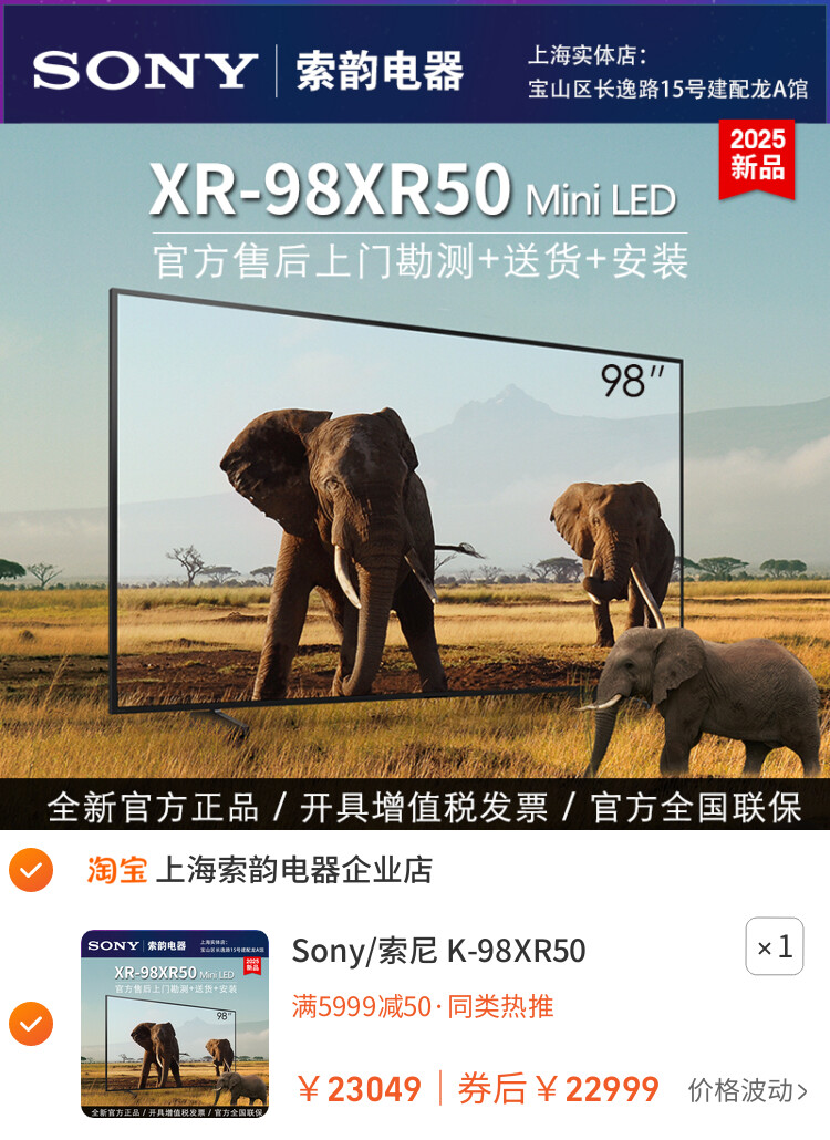 Sony/索尼 K-98XR50 2025款 新品 98寸 电视机 FW-98BZ53L 98X90L