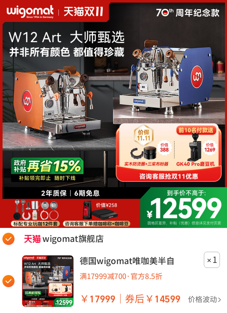 德国wigomat唯咖美半自动咖啡机家商用E61旋转泵变压W12 Art系列