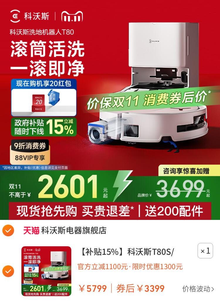 您的位置 :首页 / 优惠券 / 淘宝优惠券 【补贴15%】科沃斯T80S/T80洗地扫地机器人扫拖地一体机自动清洗 到手价:3399元 有效时间:长期有效 网购平台:淘宝 去购买 点击复制淘口令 【补贴15%】科沃斯T80S/T80洗地扫地机器人扫拖地一体机自动清洗 【推荐理由】热门商品,同类热推 【到手价】3399.00元 【下单链接】78¥ CA381 ZPhNfVXN8v0¥ https://m.tb.cn/h.SleInEl 【补贴15%】科沃斯T80S/T80洗地扫地机器人扫拖地一体机自动清洗 优惠详情 【补贴15%】科沃斯T80S/T80洗地扫地机器人扫拖地一体机自动清洗 【推荐理由】热门商品,同类热推 【到手价】3399.00元 【下单链接】https://s.click.taobao.com/vPVNn2q 原图片 上一张 下一张 自动/暂停播放 相关产品 聪妈花语抽纸加大加 极光0D超薄油亮丝袜性 婴儿专用手口湿纸巾 买1送1可心柔婴儿纸巾 【加量12提】大包悬挂 漫花1300张悬挂式抽纸 金日禾野牛奶加钙燕 医用妇科护垫非卫生 热门标签: 上篇:【李佳琦直播间现货美妆节】追觅扫地机器人X50Pro滚筒版实时活水 下篇:【政府补贴15%】3i扫地机器人F1Pro蒸汽滚筒活水扫拖自动洗地机 温馨提示:您可查看更多:淘宝优惠券 ,本文链接:https://www.haowubang.net//html/yhq/taobao/2372.html 京东优惠券 【京东】穗宝(SYMBOL)3D山棕床垫宝耐尔弹簧床垫健脊防螨 亲爱嘚1.8米*2米(京仓闪发) 慕思(de RUCCI)天然乳胶卷300元优惠券,券后申请补贴85折 ASKO雅士高极光Pro2.0进口家用洗烘套装10kg无胶圈金属门封自动投放洗衣机 小天鹅(LittleSwan)波轮洗衣机175元优惠券领取 慕思(de RUCCI)乳胶床垫500优惠券领取,铂尔曼总统套房款 奥克斯新款按摩椅最新优惠券领取,到手价2959元 会员充值 送月卡!夸克网盘SVIP超级会员双年卡24个月 【212元】包邮秒杀 【官方直充】迅雷超级会员半年 【88元】包邮秒杀 腾讯视频超级影视会员充值vip12个月,福利价仅268元秒杀! 淘金币抵扣109!爱奇艺黄金vip会员10个月 【107元】包邮秒杀 淘宝秒杀:【学生专享卡45】腾讯视频VIP会员三个月 福利价仅45元秒杀 优质素材:爱奇艺黄金vip年卡12个月/10月卡 福利价仅88.7元秒杀! 外卖券 饿了么外卖红包,社群专享,9.9元吃饱喝足 饿了么百元红包,开学饿请客 高校超吃卡 淘宝闪购,爆品好价外卖红包 饿了么霸王餐红包,评价有礼单单返 饿了么红包节天天领红包活动