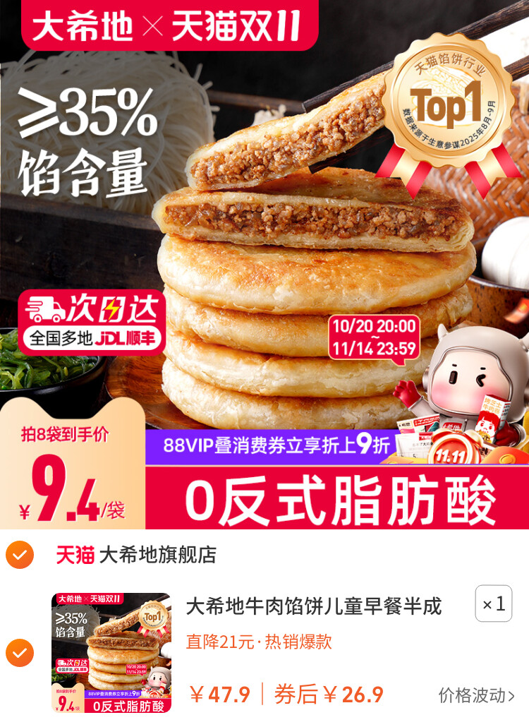 您的位置 :首页 / 优惠券 / 淘宝优惠券 大希地牛肉馅饼儿童早餐半成品加热即食酥皮牛肉饼早饭煎饼速冻品 到手价:26.9元 有效时间:长期有效 网购平台:淘宝 去购买 点击复制淘口令 大希地牛肉馅饼儿童早餐半成品加热即食酥皮牛肉饼早饭煎饼速冻品 【推荐理由】热趋商品,超万人正在疯抢 【到手价】26.90元 【下单链接】78¥ MF168 leaVfgW8Kdg¥ https://m.tb.cn/h.SoN9jyr 大希地牛肉馅饼儿童早餐半成品加热即食酥皮牛肉饼早饭煎饼速冻品 优惠详情 大希地牛肉馅饼儿童早餐半成品加热即食酥皮牛肉饼早饭煎饼速冻品 【推荐理由】热趋商品,超万人正在疯抢 【到手价】26.90元 【下单链接】https://s.click.taobao.com/fGdtFwp 原图片 上一张 下一张 自动/暂停播放 相关产品 【政府补贴15%】A39按 OSIM傲胜V3按摩椅家用 荣泰S56Pro按摩椅全身 【政府补贴15%】奥佳 荣泰A52/Pro/MAX按摩椅家 奥佳华7508Pro+按摩椅家 【政府补贴15%】奥佳 【政府补贴15%】荣泰 热门标签: 上篇:港荣蒸蛋糕淡糖老年人适合吃的整箱孕妇早餐小面包礼盒休闲零食品 下篇:港荣蒸蛋糕整箱早餐软面包老人孕妇吃的健康营养糕点休闲小零食品 温馨提示:您可查看更多:淘宝优惠券 ,本文链接:https://www.haowubang.net//html/yhq/taobao/3658.html 京东优惠券 【京东】穗宝(SYMBOL)3D山棕床垫宝耐尔弹簧床垫健脊防螨 亲爱嘚1.8米*2米(京仓闪发) 京东顾家家居按摩椅7折优惠,到手价才2543元 【京东】喜临门泰国柔感乳胶双层弹簧床垫300优惠券 长虹空调优惠券领取,大1匹新一级省电 海尔冰箱优惠券700元领取,国家以旧换新最高补贴20%, ASKO雅士高欧洲进口洗烘套装优惠券领取 会员充值 送月卡!夸克网盘SVIP超级会员双年卡24个月 【212元】包邮秒杀 【69元1年】优酷会员vip12个月年卡 券后【69元】包邮秒杀 送双周卡!夸克网盘SVIP超级会员12个月 【112元】包邮秒杀 送月卡!夸克网盘SVIP超级会员双年卡24个月 【212元】包邮秒杀 爱奇艺vip会员白金12个月年卡 【183.93元】包邮秒杀 腾讯视频超级影视会员充值vip12个月,福利价仅268元秒杀! 外卖券 饿了么百元红包,开学饿请客 高校超吃卡 淘宝闪购,爆品好价外卖红包 饿了么18.8极限爆涨红包 闪购新用户可领首单免单福利 饿了么外卖红包,社群专享,9.9元吃饱喝足