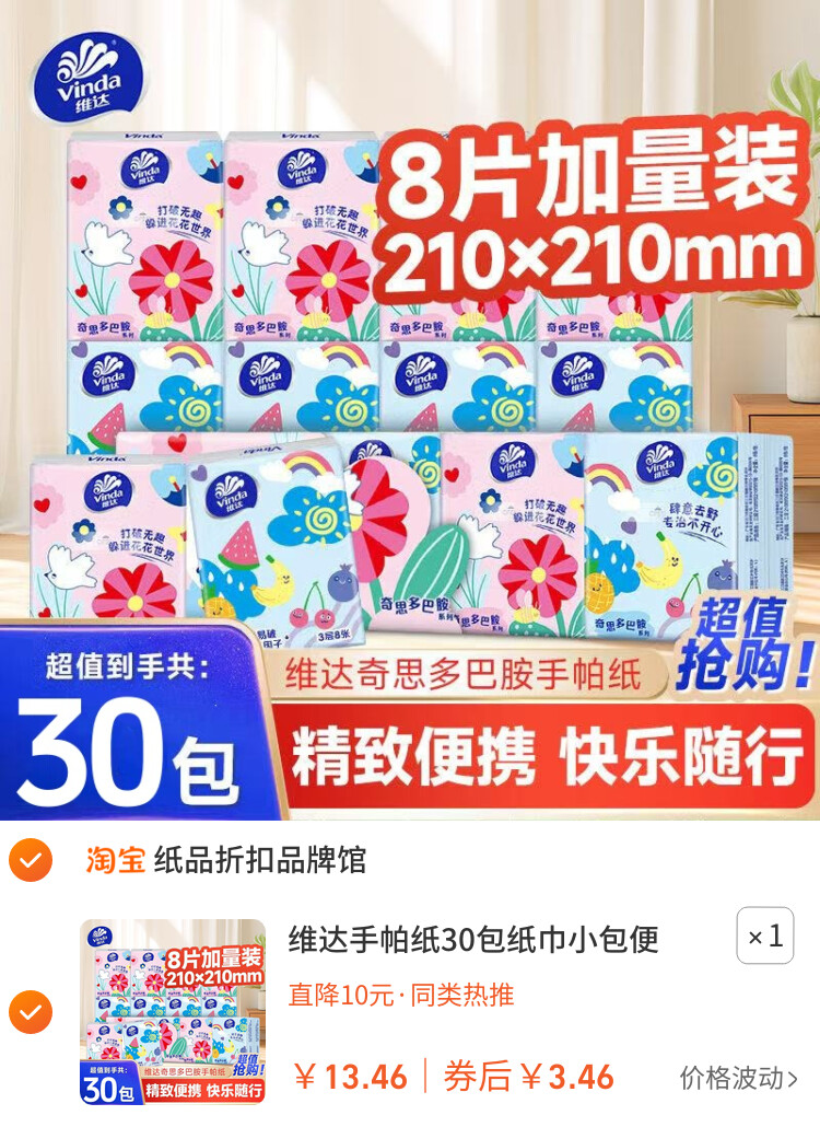 您的位置 :首页 / 优惠券 / 淘宝优惠券 维达手帕纸30包纸巾小包便携式餐巾纸抽上学出行随身装卫生纸面纸 到手价:3.46元 有效时间:长期有效 网购平台:淘宝 去购买 点击复制淘口令 维达手帕纸30包纸巾小包便携式餐巾纸抽上学出行随身装卫生纸面纸 【推荐理由】超千人正在疯抢,全网爆款 【到手价】3.46元 【下单链接】67¥ CZ005 2MFLfgWEgSj¥ https://m.tb.cn/h.SMUoqK4 维达手帕纸30包纸巾小包便携式餐巾纸抽上学出行随身装卫生纸面纸 优惠详情 维达手帕纸30包纸巾小包便携式餐巾纸抽上学出行随身装卫生纸面纸 【推荐理由】超千人正在疯抢,全网爆款 【到手价】3.46元 【下单链接】https://s.click.taobao.com/7ej6pjp 原图片 上一张 下一张 自动/暂停播放 相关产品 【政府补贴15%】A39按 OSIM傲胜V3按摩椅家用 荣泰S56Pro按摩椅全身 【政府补贴15%】奥佳 荣泰A52/Pro/MAX按摩椅家 奥佳华7508Pro+按摩椅家 【政府补贴15%】奥佳 【政府补贴15%】荣泰 热门标签: 上篇:实惠纸巾加厚大包抽纸整箱家用批发实惠卫生纸餐巾纸面巾纸卫生纸 下篇:维达纸巾抽纸24大包整箱家用实惠装批发大尺寸卫生纸面巾餐巾纸抽 温馨提示:您可查看更多:淘宝优惠券 ,本文链接:https://www.haowubang.net//html/yhq/taobao/3666.html 京东优惠券 【京东】穗宝(SYMBOL)3D山棕床垫宝耐尔弹簧床垫健脊防螨 亲爱嘚1.8米*2米(京仓闪发) ASKO雅士高欧洲进口洗烘套装优惠券领取 长虹空调优惠券领取,大1匹新一级省电 【京东】喜临门泰国柔感乳胶双层弹簧床垫300优惠券 京东顾家家居按摩椅7折优惠,到手价才2543元 海尔冰箱优惠券700元领取,国家以旧换新最高补贴20%, 会员充值 送月卡!夸克网盘SVIP超级会员双年卡24个月 【212元】包邮秒杀 【69元1年】优酷会员vip12个月年卡 券后【69元】包邮秒杀 送月卡!夸克网盘SVIP超级会员双年卡24个月 【212元】包邮秒杀 腾讯视频超级影视会员充值vip12个月,福利价仅268元秒杀! 送双周卡!夸克网盘SVIP超级会员12个月 【112元】包邮秒杀 爱奇艺vip会员白金12个月年卡 【183.93元】包邮秒杀 外卖券 淘宝闪购,爆品好价外卖红包 饿了么18.8极限爆涨红包 饿了么外卖红包,社群专享,9.9元吃饱喝足 饿了么百元红包,开学饿请客 高校超吃卡 闪购新用户可领首单免单福利