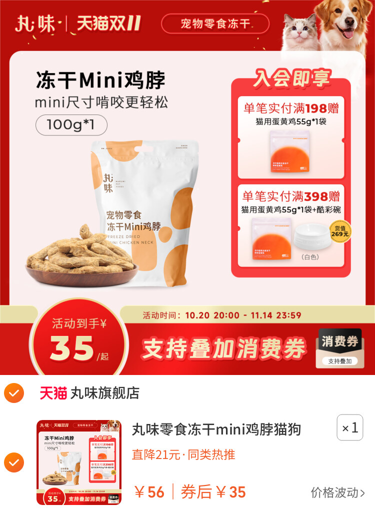 您的位置 :首页 / 优惠券 / 淘宝优惠券 丸味零食冻干mini鸡脖猫狗磨牙洁齿零食冻干宠物口臭牙结石 到手价:35元 有效时间:长期有效 网购平台:淘宝 去购买 点击复制淘口令 丸味零食冻干mini鸡脖猫狗磨牙洁齿零食冻干宠物口臭牙结石 【推荐理由】热门商品 【到手价】35.00元 【下单链接】38¥ HU926 tS0Afge0BOt¥ https://m.tb.cn/h.SM5GhBN 丸味零食冻干mini鸡脖猫狗磨牙洁齿零食冻干宠物口臭牙结石 优惠详情 丸味零食冻干mini鸡脖猫狗磨牙洁齿零食冻干宠物口臭牙结石 【推荐理由】热门商品 【到手价】35.00元 【下单链接】https://s.click.taobao.com/jCU8njp 原图片 上一张 下一张 自动/暂停播放 相关产品 【政府补贴15%】A39按 OSIM傲胜V3按摩椅家用 荣泰S56Pro按摩椅全身 【政府补贴15%】奥佳 荣泰A52/Pro/MAX按摩椅家 奥佳华7508Pro+按摩椅家 【政府补贴15%】奥佳 【政府补贴15%】荣泰 热门标签: 上篇:婴儿专用手口湿纸巾加大加厚家用实惠装新生宝宝擦屁屁湿巾整箱批 下篇:皇家小虎安格斯牛肉饼谷饲早餐半成品美式汉堡儿童牛肉堡肉饼商用 温馨提示:您可查看更多:淘宝优惠券 ,本文链接:https://www.haowubang.net//html/yhq/taobao/3692.html 京东优惠券 【京东】穗宝(SYMBOL)3D山棕床垫宝耐尔弹簧床垫健脊防螨 亲爱嘚1.8米*2米(京仓闪发) 海尔冰箱优惠券700元领取,国家以旧换新最高补贴20%, ASKO雅士高欧洲进口洗烘套装优惠券领取 京东顾家家居按摩椅7折优惠,到手价才2543元 【京东】喜临门泰国柔感乳胶双层弹簧床垫300优惠券 长虹空调优惠券领取,大1匹新一级省电 会员充值 送月卡!夸克网盘SVIP超级会员双年卡24个月 【212元】包邮秒杀 腾讯视频超级影视会员充值vip12个月,福利价仅268元秒杀! 送月卡!夸克网盘SVIP超级会员双年卡24个月 【212元】包邮秒杀 【69元1年】优酷会员vip12个月年卡 券后【69元】包邮秒杀 送双周卡!夸克网盘SVIP超级会员12个月 【112元】包邮秒杀 爱奇艺vip会员白金12个月年卡 【183.93元】包邮秒杀 外卖券 饿了么外卖红包,社群专享,9.9元吃饱喝足 饿了么百元红包,开学饿请客 高校超吃卡 淘宝闪购,爆品好价外卖红包 饿了么18.8极限爆涨红包 闪购新用户可领首单免单福利