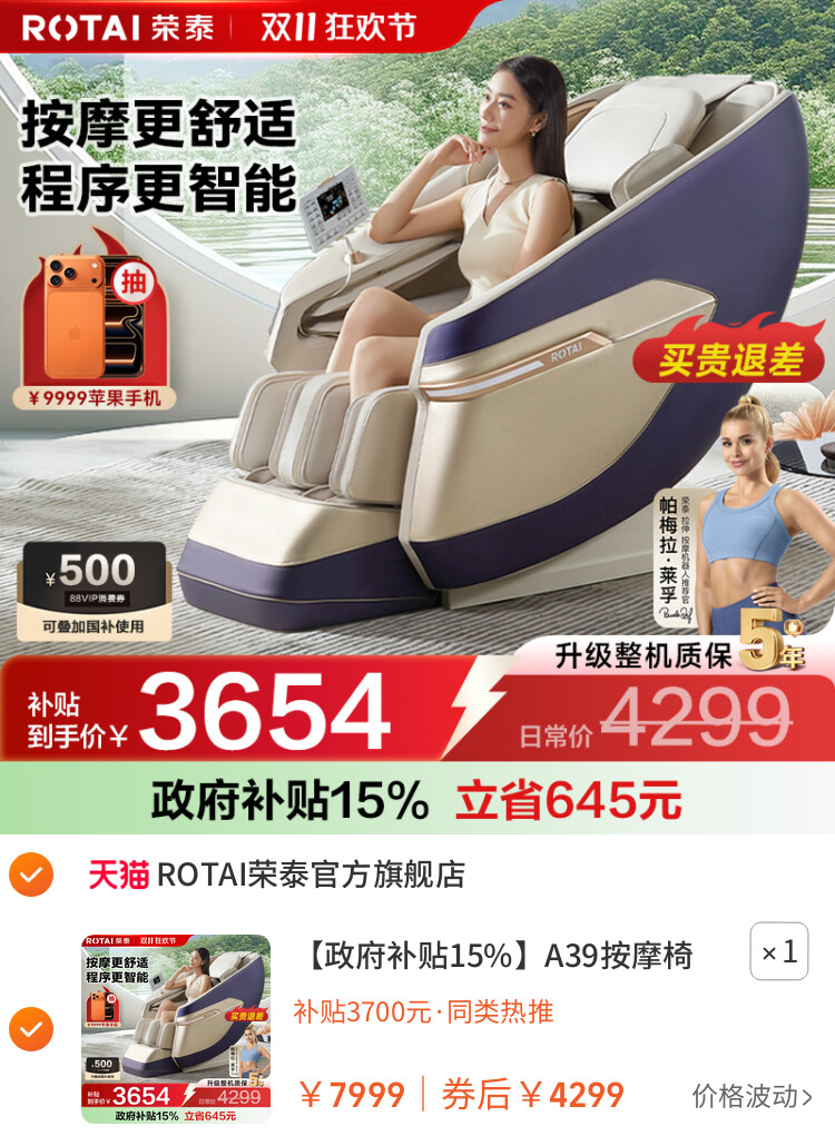 您的位置 :首页 / 优惠券 / 淘宝优惠券 【政府补贴15%】A39按摩椅全自动智能电动按摩椅家用太空舱沙发 到手价:元 有效时间: 网购平台:淘宝 去购买 点击复制淘口令 【政府补贴15%】A39按摩椅全自动智能电动按摩椅家用太空舱沙发 【推荐理由】近期热门,同类热推 【到手价】4299.00元 【下单链接】29¥ HU108 IKj1fg9orGI¥ https://m.tb.cn/h.SMCTNSu 【政府补贴15%】A39按摩椅全自动智能电动按摩椅家用太空舱沙发 优惠详情 【政府补贴15%】A39按摩椅全自动智能电动按摩椅家用太空舱沙发 【推荐理由】近期热门,同类热推 【到手价】4299.00元 【下单链接】https://s.click.taobao.com/4BCcpvp 原图片 上一张 下一张 自动/暂停播放 相关产品 【政府补贴15%】A39按 OSIM傲胜V3按摩椅家用 荣泰S56Pro按摩椅全身 【政府补贴15%】奥佳 荣泰A52/Pro/MAX按摩椅家 奥佳华7508Pro+按摩椅家 【政府补贴15%】奥佳 【政府补贴15%】荣泰 热门标签: 按摩椅按摩椅十大品牌按摩椅推荐 上篇:OSIM傲胜V3按摩椅家用全身全自动多功能智能AI舒压椅太空舱8242 下篇:暂无 温馨提示:您可查看更多:淘宝优惠券 ,本文链接:https://www.haowubang.net//html/yhq/taobao/4085.html 京东优惠券 【京东】穗宝(SYMBOL)3D山棕床垫宝耐尔弹簧床垫健脊防螨 亲爱嘚1.8米*2米(京仓闪发) 京东顾家家居按摩椅7折优惠,到手价才2543元 【京东】喜临门泰国柔感乳胶双层弹簧床垫300优惠券 海尔冰箱优惠券700元领取,国家以旧换新最高补贴20%, ASKO雅士高欧洲进口洗烘套装优惠券领取 长虹空调优惠券领取,大1匹新一级省电 会员充值 送月卡!夸克网盘SVIP超级会员双年卡24个月 【212元】包邮秒杀 送双周卡!夸克网盘SVIP超级会员12个月 【112元】包邮秒杀 爱奇艺vip会员白金12个月年卡 【183.93元】包邮秒杀 腾讯视频超级影视会员充值vip12个月,福利价仅268元秒杀! 【69元1年】优酷会员vip12个月年卡 券后【69元】包邮秒杀 送月卡!夸克网盘SVIP超级会员双年卡24个月 【212元】包邮秒杀 外卖券 淘宝闪购,爆品好价外卖红包 闪购新用户可领首单免单福利 饿了么18.8极限爆涨红包 饿了么百元红包,开学饿请客 高校超吃卡 饿了么外卖红包,社群专享,9.9元吃饱喝足
