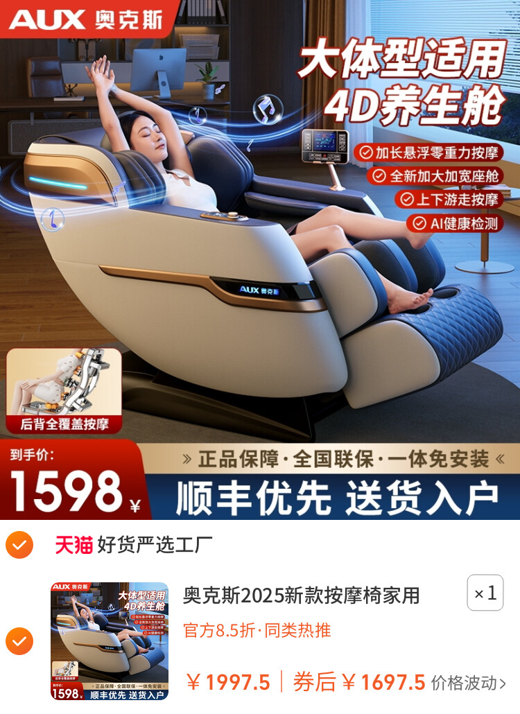 您的位置 :首页 / 优惠券 / 淘宝优惠券 奥克斯2025新款按摩椅家用小型全自动电动太空舱椅背部零重力豪华 到手价:1697.5元 有效时间:长期有效 网购平台:淘宝 去购买 点击复制淘口令 奥克斯2025新款按摩椅家用小型全自动电动太空舱椅背部零重力豪华 【推荐理由】品牌高佣,近7天浏览过千 【到手价】1697.50元 【下单链接】89¥ HU006 uYC1fgkakXe¥ https://m.tb.cn/h.SMNoQqg 奥克斯2025新款按摩椅家用小型全自动电动太空舱椅背部零重力豪华 优惠详情 奥克斯2025新款按摩椅家用小型全自动电动太空舱椅背部零重力豪华 【推荐理由】品牌高佣,近7天浏览过千 【到手价】1697.50元 【下单链接】https://s.click.taobao.com/zpGoovp 原图片 上一张 下一张 自动/暂停播放 相关产品 奥克斯2025新款按摩椅 OSIM傲胜V2家用全身全 【政府补贴15%】奥佳 【政府补贴15%】A39按 OSIM傲胜V3按摩椅家用 荣泰S56Pro按摩椅全身 【政府补贴15%】奥佳 荣泰A52/Pro/MAX按摩椅家 热门标签: 按摩椅优惠券优惠券奥克斯按摩椅优惠券 上篇:OSIM傲胜V2家用全身全自动多功能智能按摩椅揉捏椅电动太空舱8212 下篇:暂无 温馨提示:您可查看更多:淘宝优惠券 ,本文链接:https://www.haowubang.net//html/yhq/taobao/4088.html 京东优惠券 【京东】穗宝(SYMBOL)3D山棕床垫宝耐尔弹簧床垫健脊防螨 亲爱嘚1.8米*2米(京仓闪发) [京东]穗宝(SYMBOL) 弹簧床垫100元优惠券 【京东】11.11大促主会场(无线) 慕思床垫椰棕偏硬床垫弹簧床垫,300元优惠券领取 小天鹅(LittleSwan)波轮洗衣机175元优惠券领取 荣泰按S56pro摩椅280元优惠券领取,到手价6589 会员充值 送月卡!夸克网盘SVIP超级会员双年卡24个月 【212元】包邮秒杀 淘宝秒杀:【69元1年】优酷会员12个月 福利价仅69元秒杀! 下拉详情下单!腾讯视频VIP会员12个月 券后【150.32元】包邮秒 限购1件网易云音乐黑胶SVIP会员年卡 【96元】包邮秒杀 优质素材:爱奇艺黄金vip年卡12个月/10月卡 福利价仅88.7元秒杀! 爱奇艺vip会员白金12个月年卡 【183.93元】包邮秒杀 外卖券 淘宝闪购红包,领最高15元大额红包 饿了么外卖红包,社群专享,9.9元吃饱喝足 饿了么霸王餐红包,评价有礼单单返 闪购新用户可领首单免单福利 淘宝闪购,爆品好价外卖红包