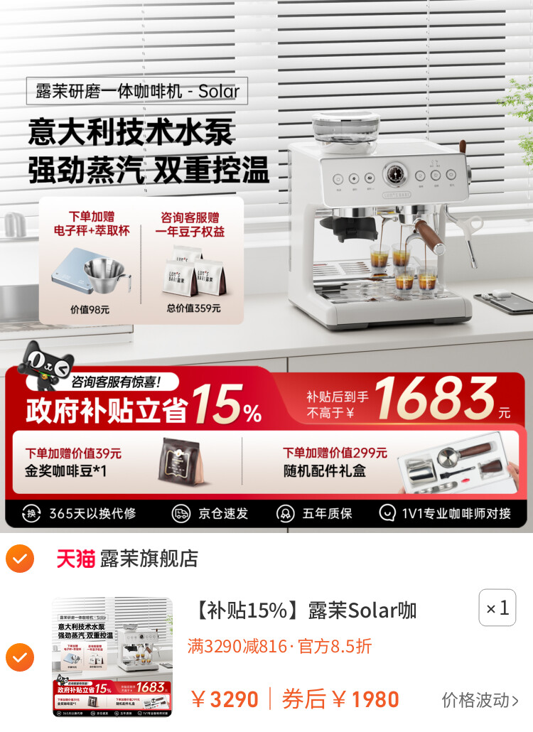 您的位置 :首页 / 优惠券 / 淘宝优惠券 露茉Solar咖啡机小型咖啡机816元优惠券 到手价:1980元 有效时间:长期有效 网购平台:淘宝 去购买 点击复制淘口令 【补贴15%】露茉Solar咖啡机小型家用意式半自动研磨一体强劲蒸汽 【推荐理由】近7天浏览过万,同类热推 【券面额】816元 【到手价】1980.00元 【下单链接】48¥ MF937 QK5vf7AcB6j¥ https://m.tb.cn/h.SJ90tfK 【补贴15%】露茉Solar咖啡机小型家用意式半自动研磨一体强劲蒸汽 优惠详情 【补贴15%】露茉Solar咖啡机小型家用意式半自动研磨一体强劲蒸汽 【推荐理由】近7天浏览过万,同类热推 【券面额】816元 【到手价】1980.00元 【下单链接】https://s.click.taobao.com/GY7vVbp 原图片 上一张 下一张 自动/暂停播放 相关产品 Barsetto百胜图3SAP冷萃 Barsetto/百胜图2SAP冷萃 格米莱白鲸3035ABC半自 飞利浦咖啡机意式小 露茉Solar咖啡机小型咖 艾摩客Aeomjk/CM5580机械 delonghi德龙半自动咖啡 格米莱半自动咖啡机 热门标签: 露茉小型咖啡机 上篇:艾摩客Aeomjk/CM5580机械意式家用小型咖啡机406元优惠券 下篇:飞利浦咖啡机意式小型Baristina1366元优惠券 温馨提示:您可查看更多:淘宝优惠券 ,本文链接:https://www.haowubang.net//html/yhq/taobao/5126.html 京东优惠券 【京东】穗宝(SYMBOL)3D山棕床垫宝耐尔弹簧床垫健脊防螨 亲爱嘚1.8米*2米(京仓闪发) 京东奥佳华按摩椅优惠券300元领取,最高补贴15% 【京东】格力空调 1.5匹云佳pro 新一级能效 变频冷暖壁挂式卧室挂机 新品升级 省电空调 KFR-35GW/NhMa1BG 海尔冰箱优惠券700元领取,国家以旧换新最高补贴20%, [京东]穗宝(SYMBOL) 弹簧床垫100元优惠券 京东】慕思(de RUCCI)天然乳胶垫慕斯独立筒弹簧防螨床垫 梦觉 1.8*2.0米 会员充值 送月卡!夸克网盘SVIP超级会员双年卡24个月 【212元】包邮秒杀 优质素材:芒果/优酷年卡会员仅需57 福利价仅57元秒杀! 送月卡!夸克网盘SVIP超级会员双年卡24个月 【212元】包邮秒杀 爱奇艺vip会员白金12个月年卡 【183.93元】包邮秒杀 下拉详情下单!腾讯视频VIP会员12个月 券后【150.32元】包邮秒 淘金币抵扣14.6!爱奇艺vip黄金会员月卡 【14.6元】包邮秒杀 外卖券 饿了么百元红包,开学饿请客 高校超吃卡 饿了么霸王餐红包,评价有礼单单返 闪购新用户可领首单免单福利 饿了么18.8极限爆涨红包 饿了么外卖红包,社群专享,9.9元吃饱喝足