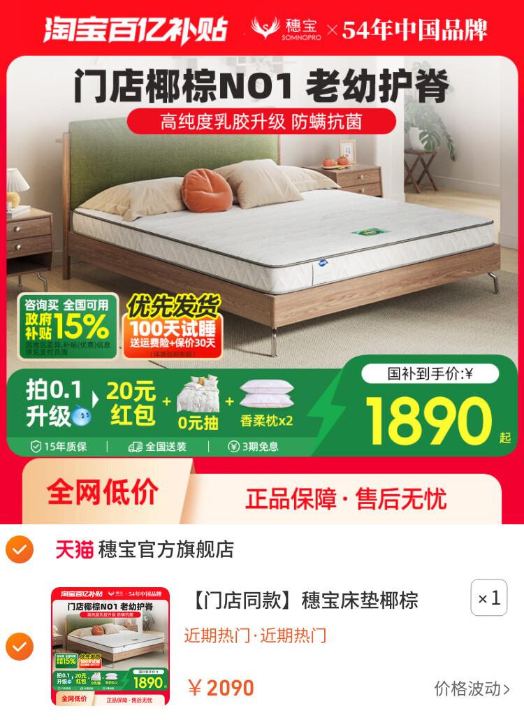 您的位置 :首页 / 优惠券 / 淘宝优惠券 【门店同款】穗宝床垫椰棕 席梦思偏硬1.8米床定制榻榻米南海椰歌 到手价:2090元 有效时间:长期有效 网购平台:淘宝 去购买 点击复制淘口令 【门店同款】穗宝床垫椰棕 席梦思偏硬1.8米床定制榻榻米南海椰歌 【推荐理由】超千人正在疯抢,店内高佣 【到手价】2090.00元 【下单链接】99¥ HU006 zKPuf0ElqLB¥ https://m.tb.cn/h.SSQGBNo 【门店同款】穗宝床垫椰棕 席梦思偏硬1.8米床定制榻榻米南海椰歌 优惠详情 【门店同款】穗宝床垫椰棕 席梦思偏硬1.8米床定制榻榻米南海椰歌 【推荐理由】超千人正在疯抢,店内高佣 【到手价】2090.00元 【下单链接】https://s.click.taobao.com/mscAvGq 原图片 上一张 下一张 自动/暂停播放 相关产品 慕思官方十大名牌S 【小黑盒】慕思政府 慕思床垫席梦弹簧0压 慕思官方旗舰店床垫 【睡眠精灵】慕思官 穗宝床垫记忆棉席梦 穗宝床垫艾草环保榻 穗宝乳胶独立袋装弹 热门标签: 上篇:【政府补贴】穗宝弹簧1.8米家用成人双人床席梦思护脊床垫 堪培拉 下篇:【政府补贴】穗宝椰棕硬垫乳胶弹簧席梦思1.8米双人家用床垫经典 温馨提示:您可查看更多:淘宝优惠券 ,本文链接:https://www.haowubang.net//html/yhq/taobao/563.html 京东优惠券 LG83英寸OLED巨幕电视机优惠券,4K超高清120Hz护眼游戏电竞高刷显示杜比视界 小天鹅(LittleSwan)波轮洗衣机175元优惠券领取 海尔(Haier)500元优惠领取,家电国家补贴20% 【京东】喜临门泰国柔感乳胶双层弹簧床垫300优惠券 奥克斯新款按摩椅最新优惠券领取,到手价2959元 容声嵌入式电冰箱国家补贴最高补贴20%,京东优惠券500元领取 会员充值 送月卡!夸克网盘SVIP超级会员双年卡24个月 【212元】包邮秒杀 淘宝秒杀:【学生专享卡45】腾讯视频VIP会员三个月 福利价仅45元秒杀 【69元1年】优酷会员vip12个月年卡 券后【69元】包邮秒杀 腾讯视频超级影视会员充值vip12个月,福利价仅268元秒杀! 优质素材:芒果/优酷年卡会员仅需57 福利价仅57元秒杀! 淘宝秒杀:【69元1年】优酷会员12个月 福利价仅69元秒杀! 外卖券 淘宝闪购红包,领最高15元大额红包 饿了么霸王餐红包,评价有礼单单返 饿了么百元红包,开学饿请客 高校超吃卡 饿了么外卖红包,社群专享,9.9元吃饱喝足 饿了么红包节天天领红包活动