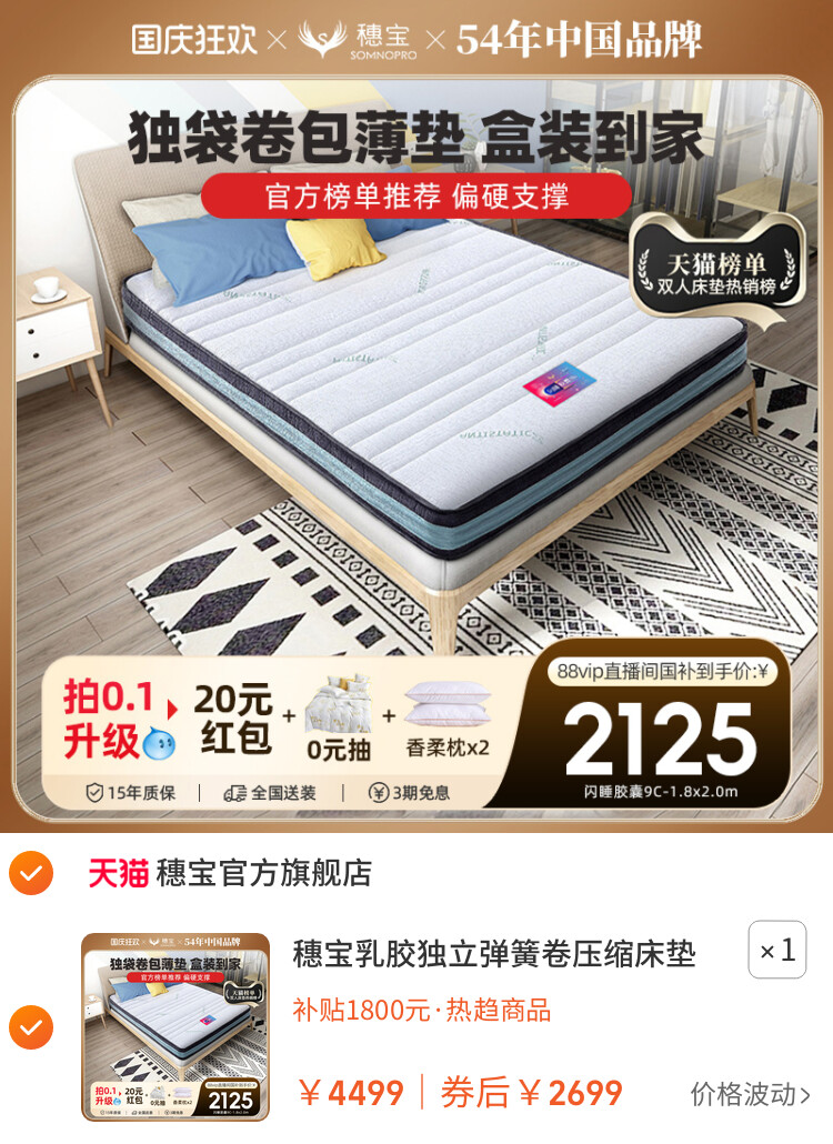 您的位置 :首页 / 优惠券 / 淘宝优惠券 穗宝乳胶独立弹簧卷压缩床垫薄款软硬两用1.8米双人床 闪睡系列 到手价:2699元 有效时间:长期有效 网购平台:淘宝 去购买 点击复制淘口令 穗宝乳胶独立弹簧卷压缩床垫薄款软硬两用1.8米双人床 闪睡系列 【推荐理由】近7天浏览过万,同类热推 【到手价】2699.00元 【下单链接】68¥ CZ001 Kp6Ff0EpGNi¥ https://m.tb.cn/h.S7XjY6Y 穗宝乳胶独立弹簧卷压缩床垫薄款软硬两用1.8米双人床 闪睡系列 优惠详情 穗宝乳胶独立弹簧卷压缩床垫薄款软硬两用1.8米双人床 闪睡系列 【推荐理由】近7天浏览过万,同类热推 【到手价】2699.00元 【下单链接】https://s.click.taobao.com/8yV2V4q 原图片 上一张 下一张 自动/暂停播放 相关产品 慕思官方十大名牌S 【小黑盒】慕思政府 慕思床垫席梦弹簧0压 慕思官方旗舰店床垫 【睡眠精灵】慕思官 穗宝床垫记忆棉席梦 穗宝床垫艾草环保榻 穗宝乳胶独立袋装弹 热门标签: 上篇:穗宝床垫独袋弹簧护脊环保椰棕软硬两用席梦思加厚抗菌 旅梦者 下篇:穗宝儿童青年护脊椎整网弹簧乳胶席梦思床垫1.5 1.2米床 仙踪系列 温馨提示:您可查看更多:淘宝优惠券 ,本文链接:https://www.haowubang.net//html/yhq/taobao/567.html 京东优惠券 LG83英寸OLED巨幕电视机优惠券,4K超高清120Hz护眼游戏电竞高刷显示杜比视界 奥克斯新款按摩椅最新优惠券领取,到手价2959元 海尔(Haier)500元优惠领取,家电国家补贴20% 【京东】喜临门泰国柔感乳胶双层弹簧床垫300优惠券 容声嵌入式电冰箱国家补贴最高补贴20%,京东优惠券500元领取 小天鹅(LittleSwan)波轮洗衣机175元优惠券领取 会员充值 送月卡!夸克网盘SVIP超级会员双年卡24个月 【212元】包邮秒杀 腾讯视频超级影视会员充值vip12个月,福利价仅268元秒杀! 淘宝秒杀:【学生专享卡45】腾讯视频VIP会员三个月 福利价仅45元秒杀 优质素材:芒果/优酷年卡会员仅需57 福利价仅57元秒杀! 【69元1年】优酷会员vip12个月年卡 券后【69元】包邮秒杀 淘宝秒杀:【69元1年】优酷会员12个月 福利价仅69元秒杀! 外卖券 饿了么红包节天天领红包活动 饿了么外卖红包,社群专享,9.9元吃饱喝足 饿了么霸王餐红包,评价有礼单单返 淘宝闪购红包,领最高15元大额红包 饿了么百元红包,开学饿请客 高校超吃卡