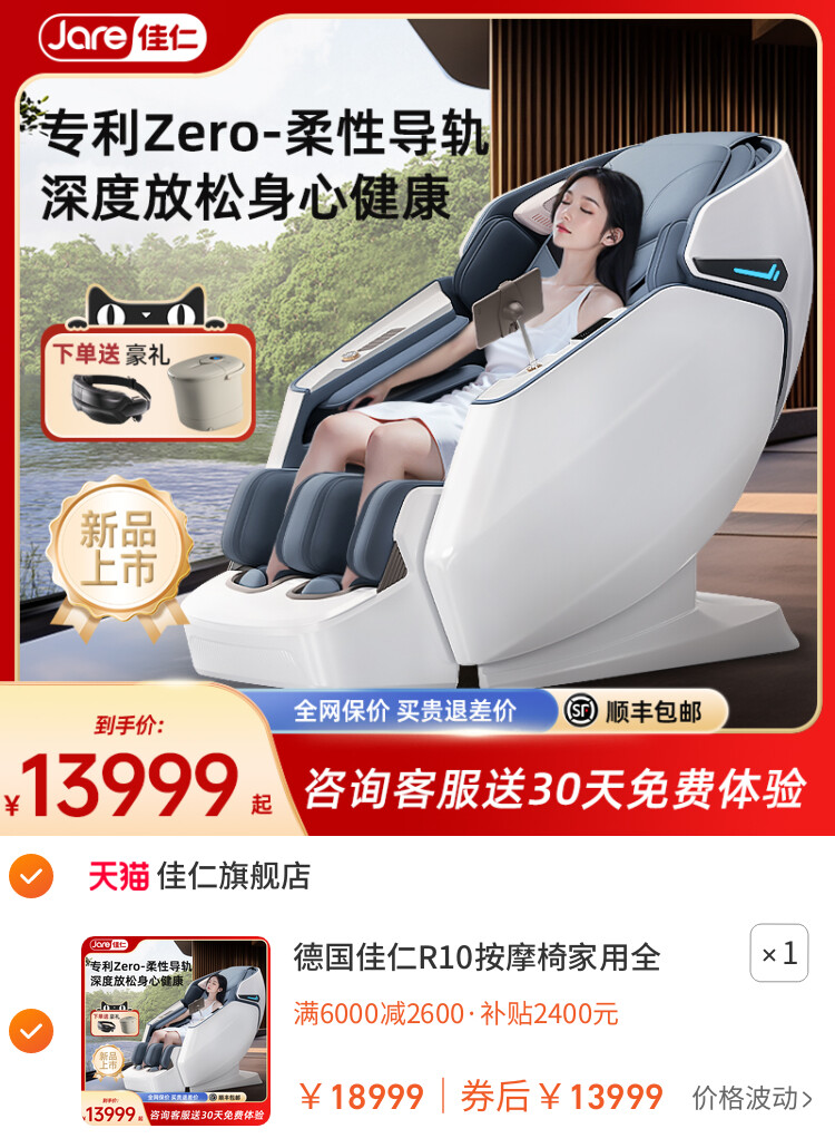 您的位置 :首页 / 优惠券 / 淘宝优惠券 德国佳仁R10按摩椅2026款2600元优惠券领取 到手价:13999元 有效时间:长期有效 网购平台:淘宝 去购买 点击复制淘口令 德国佳仁R10按摩椅家用全身自动智能电动太空舱多功能豪华沙发 【推荐理由】历史热推 【券面额】2600元 【到手价】13999.00元 【下单链接】59¥ HU071 YpnNfQrZBFN¥ https://m.tb.cn/h.StQ0uqj 德国佳仁R10按摩椅家用全身自动智能电动太空舱多功能豪华沙发 优惠详情 德国佳仁R10按摩椅家用全身自动智能电动太空舱多功能豪华沙发 【推荐理由】历史热推 【券面额】2600元 【到手价】13999.00元 【下单链接】https://s.click.taobao.com/rm9wsfp 原图片 上一张 下一张 自动/暂停播放 相关产品 卡萨帝揽光制冰电冰 【政府补贴20%】新品 TCL冷布丁嵌全自动制 海尔小红花制冰电冰 美的家用小型冰箱淘 海尔麦浪嵌入式冰箱 卡萨帝揽光家用电冰 海尔冰箱以旧换新补 热门标签: 按摩椅优惠券佳仁按摩椅 上篇:奥克斯按摩椅2026新款1000元优惠券领取 下篇:奥克斯按摩椅2026款1000元优惠券领取 温馨提示:您可查看更多:淘宝优惠券 ,本文链接:https://www.haowubang.net//html/yhq/taobao/6166.html 京东优惠券 语森忆意大利ROKERT火箭R58咖啡机 京东奥克斯(AUX)按摩椅2025新款150元优惠券,到手机2230元 【京东】格力(GREE)3匹 天仪 一级能效 变频冷暖 净菌自洁 出风口可拆洗 立柜式空调柜机 KFR-72LW/(72504)FNhAa-B1 京东】慕思(de RUCCI)天然乳胶垫慕斯独立筒弹簧防螨床垫 梦觉 1.8*2.0米 慕思乳进口胶床垫300元优惠券领取,还可以享受国家补贴85折 慕思(de RUCCI)乳胶床垫500优惠券领取,铂尔曼总统套房款 会员充值 送月卡!夸克网盘SVIP超级会员双年卡24个月 【212元】包邮秒杀 优质素材:芒果/优酷年卡会员仅需57 福利价仅57元秒杀! 送月卡!夸克网盘SVIP超级会员双年卡24个月 【212元】包邮秒杀 【69元1年】优酷会员vip12个月年卡 券后【69元】包邮秒杀 淘宝秒杀:【学生专享卡45】腾讯视频VIP会员三个月 福利价仅45元秒杀 淘金币抵扣109!爱奇艺黄金vip会员10个月 【107元】包邮秒杀 外卖券 淘宝闪购,爆品好价外卖红包 饿了么18.8极限爆涨红包 淘宝闪购红包,领最高15元大额红包 饿了么外卖红包,社群专享,9.9元吃饱喝足 闪购新用户可领首单免单福利