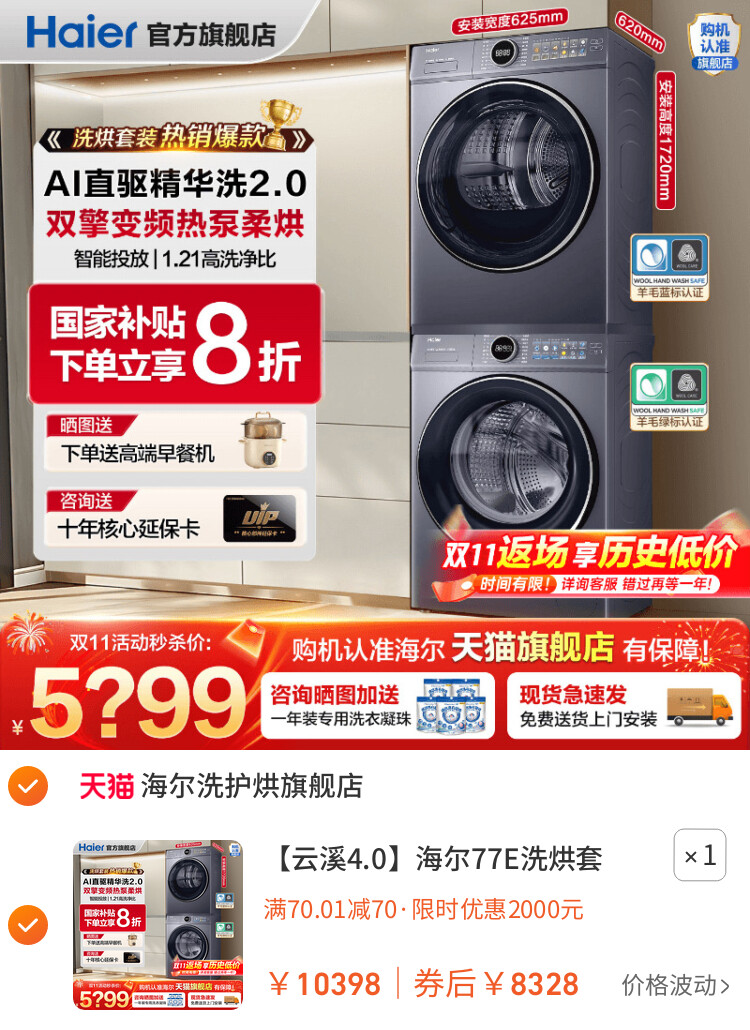 您的位置 :首页 / 优惠券 / 淘宝优惠券 海尔77E洗烘套装官方旗舰店70元优惠券领取 到手价:8328元 有效时间:长期有效 网购平台:淘宝 去购买 点击复制淘口令 【云溪4.0】海尔77E洗烘套装直驱滚筒洗衣机热泵烘干机官方旗舰店 【推荐理由】热门商品,同类热推 【券面额】70元 【到手价】8328.00元 【下单链接】79¥ CZ057 RnZBfQtP9od¥ https://m.tb.cn/h.SG6c2qw 【云溪4.0】海尔77E洗烘套装直驱滚筒洗衣机热泵烘干机官方旗舰店 优惠详情 【云溪4.0】海尔77E洗烘套装直驱滚筒洗衣机热泵烘干机官方旗舰店 【推荐理由】热门商品,同类热推 【券面额】70元 【到手价】8328.00元 【下单链接】https://s.click.taobao.com/hZoUjfp 原图片 上一张 下一张 自动/暂停播放 相关产品 卡萨帝揽光制冰电冰 【政府补贴20%】新品 TCL冷布丁嵌全自动制 海尔小红花制冰电冰 美的家用小型冰箱淘 海尔麦浪嵌入式冰箱 卡萨帝揽光家用电冰 海尔冰箱以旧换新补 热门标签: 海尔洗烘套装海尔优惠券海尔洗烘机 上篇:摩摩哒3D双机芯按摩椅2000元优惠券领取 下篇:小天鹅小乌梅3.0洗烘套装淘宝店150元优惠券领取 温馨提示:您可查看更多:淘宝优惠券 ,本文链接:https://www.haowubang.net//html/yhq/taobao/6182.html 京东优惠券 语森忆意大利ROKERT火箭R58咖啡机 【京东】格力(GREE)3匹 天仪 一级能效 变频冷暖 净菌自洁 出风口可拆洗 立柜式空调柜机 KFR-72LW/(72504)FNhAa-B1 慕思(de RUCCI)乳胶床垫500优惠券领取,铂尔曼总统套房款 慕思乳进口胶床垫300元优惠券领取,还可以享受国家补贴85折 京东奥克斯(AUX)按摩椅2025新款150元优惠券,到手机2230元 京东】慕思(de RUCCI)天然乳胶垫慕斯独立筒弹簧防螨床垫 梦觉 1.8*2.0米 会员充值 送月卡!夸克网盘SVIP超级会员双年卡24个月 【212元】包邮秒杀 优质素材:芒果/优酷年卡会员仅需57 福利价仅57元秒杀! 淘宝秒杀:【学生专享卡45】腾讯视频VIP会员三个月 福利价仅45元秒杀 送月卡!夸克网盘SVIP超级会员双年卡24个月 【212元】包邮秒杀 【69元1年】优酷会员vip12个月年卡 券后【69元】包邮秒杀 淘金币抵扣109!爱奇艺黄金vip会员10个月 【107元】包邮秒杀 外卖券 饿了么外卖红包,社群专享,9.9元吃饱喝足 淘宝闪购红包,领最高15元大额红包 淘宝闪购,爆品好价外卖红包 闪购新用户可领首单免单福利 饿了么18.8极限爆涨红包