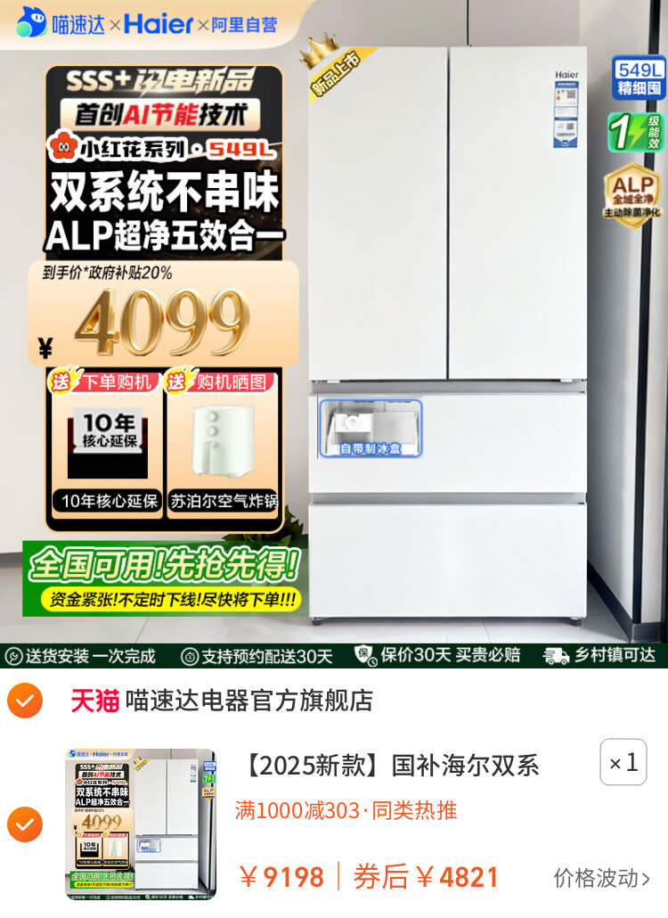 您的位置 :首页 / 优惠券 / 淘宝优惠券 海尔双系统小红花制冰冰箱【2026新款】淘宝优惠券 到手价:4821元 有效时间:长期有效 网购平台:淘宝 去购买 点击复制淘口令 【2025新款】国补海尔双系统小红花系列法式549升大容量制冰冰箱 【推荐理由】超千人正在疯抢,热趋商品 【券面额】303元 【到手价】4821.00元 【下单链接】37¥ CA381 Wsuhf9attNC¥ https://m.tb.cn/h.St2mBZe 【2025新款】国补海尔双系统小红花系列法式549升大容量制冰冰箱 优惠详情 【2025新款】国补海尔双系统小红花系列法式549升大容量制冰冰箱 【推荐理由】超千人正在疯抢,热趋商品 【券面额】303元 【到手价】4821.00元 【下单链接】https://s.click.taobao.com/6MAHEfp 原图片 上一张 下一张 自动/暂停播放 相关产品 卡萨帝揽光制冰电冰 【政府补贴20%】新品 TCL冷布丁嵌全自动制 海尔小红花制冰电冰 美的家用小型冰箱淘 海尔麦浪嵌入式冰箱 卡萨帝揽光家用电冰 海尔冰箱以旧换新补 热门标签: 冰箱优惠券优惠券海尔冰箱 上篇:海尔麦浪嵌入式冰箱以旧换新补贴,淘宝100元优惠券 下篇:卡萨帝揽光家用电冰箱,以旧换新补贴2000元优惠券 温馨提示:您可查看更多:淘宝优惠券 ,本文链接:https://www.haowubang.net//html/yhq/taobao/6201.html 京东优惠券 语森忆意大利ROKERT火箭R58咖啡机 京东奥克斯(AUX)按摩椅2025新款150元优惠券,到手机2230元 京东】慕思(de RUCCI)天然乳胶垫慕斯独立筒弹簧防螨床垫 梦觉 1.8*2.0米 慕思乳进口胶床垫300元优惠券领取,还可以享受国家补贴85折 慕思(de RUCCI)乳胶床垫500优惠券领取,铂尔曼总统套房款 【京东】格力(GREE)3匹 天仪 一级能效 变频冷暖 净菌自洁 出风口可拆洗 立柜式空调柜机 KFR-72LW/(72504)FNhAa-B1 会员充值 送月卡!夸克网盘SVIP超级会员双年卡24个月 【212元】包邮秒杀 【69元1年】优酷会员vip12个月年卡 券后【69元】包邮秒杀 淘金币抵扣109!爱奇艺黄金vip会员10个月 【107元】包邮秒杀 送月卡!夸克网盘SVIP超级会员双年卡24个月 【212元】包邮秒杀 优质素材:芒果/优酷年卡会员仅需57 福利价仅57元秒杀! 淘宝秒杀:【学生专享卡45】腾讯视频VIP会员三个月 福利价仅45元秒杀 外卖券 淘宝闪购红包,领最高15元大额红包 淘宝闪购,爆品好价外卖红包 饿了么18.8极限爆涨红包 饿了么外卖红包,社群专享,9.9元吃饱喝足 闪购新用户可领首单免单福利