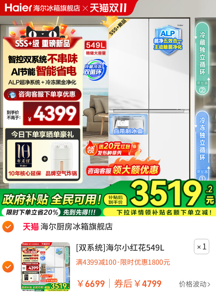 您的位置 :首页 / 优惠券 / 淘宝优惠券 TCL冷布丁嵌全自动制冰箱300元优惠券领取 到手价:4099元 有效时间:长期有效 网购平台:淘宝 去购买 点击复制淘口令 TCL冷布丁409升法式多门四门电冰箱超窄超薄小户型零嵌全自动制冰 【推荐理由】同类高佣 【券面额】300元 【到手价】4099.00元 【下单链接】19¥ HU287 8UQIf90TsW8¥ https://m.tb.cn/h.StWchz3 TCL冷布丁409升法式多门四门电冰箱超窄超薄小户型零嵌全自动制冰 优惠详情 TCL冷布丁409升法式多门四门电冰箱超窄超薄小户型零嵌全自动制冰 【推荐理由】同类高佣 【券面额】300元 【到手价】4099.00元 【下单链接】https://s.click.taobao.com/lNgqtSp 原图片 上一张 下一张 自动/暂停播放 相关产品 卡萨帝揽光制冰电冰 【政府补贴20%】新品 TCL冷布丁嵌全自动制 海尔小红花制冰电冰 美的家用小型冰箱淘 海尔麦浪嵌入式冰箱 卡萨帝揽光家用电冰 海尔冰箱以旧换新补 热门标签: 冰箱优惠券冰箱TCL冰箱 上篇:海尔小红花制冰电冰箱旗舰店100元优惠券 下篇:【政府补贴20%】新品海尔电冰箱,淘宝3010元优惠券 温馨提示:您可查看更多:淘宝优惠券 ,本文链接:https://www.haowubang.net//html/yhq/taobao/6208.html 京东优惠券 语森忆意大利ROKERT火箭R58咖啡机 慕思乳进口胶床垫300元优惠券领取,还可以享受国家补贴85折 【京东】格力(GREE)3匹 天仪 一级能效 变频冷暖 净菌自洁 出风口可拆洗 立柜式空调柜机 KFR-72LW/(72504)FNhAa-B1 慕思(de RUCCI)乳胶床垫500优惠券领取,铂尔曼总统套房款 京东奥克斯(AUX)按摩椅2025新款150元优惠券,到手机2230元 京东】慕思(de RUCCI)天然乳胶垫慕斯独立筒弹簧防螨床垫 梦觉 1.8*2.0米 会员充值 送月卡!夸克网盘SVIP超级会员双年卡24个月 【212元】包邮秒杀 优质素材:芒果/优酷年卡会员仅需57 福利价仅57元秒杀! 淘宝秒杀:【学生专享卡45】腾讯视频VIP会员三个月 福利价仅45元秒杀 淘金币抵扣109!爱奇艺黄金vip会员10个月 【107元】包邮秒杀 【69元1年】优酷会员vip12个月年卡 券后【69元】包邮秒杀 送月卡!夸克网盘SVIP超级会员双年卡24个月 【212元】包邮秒杀 外卖券 淘宝闪购红包,领最高15元大额红包 淘宝闪购,爆品好价外卖红包 闪购新用户可领首单免单福利 饿了么18.8极限爆涨红包 饿了么外卖红包,社群专享,9.9元吃饱喝足