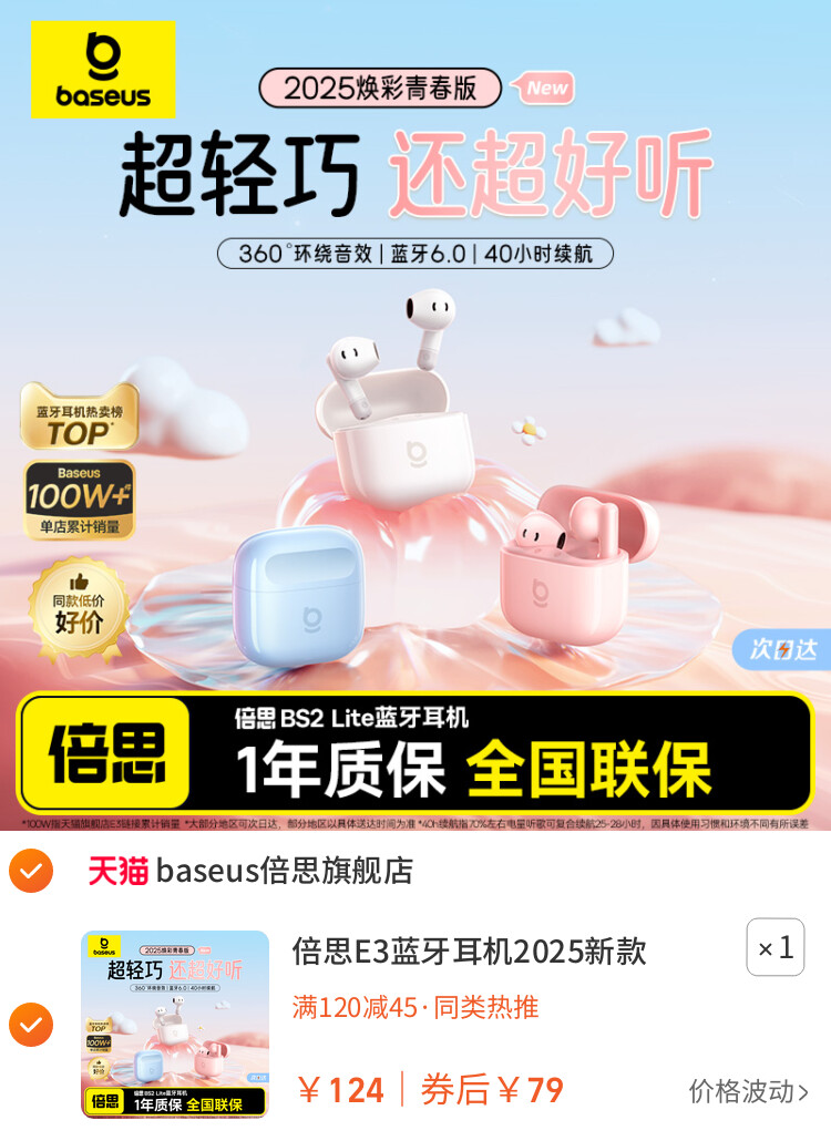 您的位置 :首页 / 优惠券 / 淘宝优惠券 倍思E3蓝牙耳机2025新款无线半入耳式长续航超小适用于果小米华为 到手价:79元 有效时间:长期有效 网购平台:淘宝 去购买 点击复制淘口令 倍思E3蓝牙耳机2025新款无线半入耳式长续航超小适用于果小米华为 【推荐理由】近7天浏览过万 【券面额】45元 【到手价】79.00元 【下单链接】17¥ HU108 4gwpf9jeYDP¥ https://m.tb.cn/h.SG3mGx0 倍思E3蓝牙耳机2025新款无线半入耳式长续航超小适用于果小米华为 优惠详情 倍思E3蓝牙耳机2025新款无线半入耳式长续航超小适用于果小米华为 【推荐理由】近7天浏览过万 【券面额】45元 【到手价】79.00元 【下单链接】https://s.click.taobao.com/0CsxRep 原图片 上一张 下一张 自动/暂停播放 相关产品 摩摩哒 M613 PRO 家用智 丝飘乳霜纸新生儿宝 维达抽纸24包棉韧压花 卡其猫馥桂兰馨24包商 漫花大包抽纸家用实 【李昀锐同款】清风 活力28香氛洗衣液留香 小漂漂酵素液除菌除 热门标签: 蓝牙耳机 上篇:美的空气炸锅家用新款电烤箱电炸锅一体免翻面可视大容量烹饪机 下篇:[政府补贴15%]倍思BC1耳夹耳机蓝牙气骨传导开放式跑步2025年新款 温馨提示:您可查看更多:淘宝优惠券 ,本文链接:https://www.haowubang.net//html/yhq/taobao/6328.html 京东优惠券 海尔16L燃气热水器钜惠1619元 进口ASKO雅士高烘洗机500元优惠券领取,更多优惠券在咨询客服 【京东】格力空调 1.5匹云佳pro 新一级能效 变频冷暖壁挂式卧室挂机 新品升级 省电空调 KFR-35GW/NhMa1BG 松下(Panasonic)日本松下按摩椅MAC9 MAC9雾灰蓝 【京东】华凌空调 大1.5匹【大风口】双排神机二代舒适风变频冷暖挂机 超一级能效KFR-35GW/N8HE1Ⅱ国家补贴 松下(Panasonic)松下按摩椅深米色MAC8 会员充值 送月卡!夸克网盘SVIP超级会员双年卡24个月 【212元】包邮秒杀 限购1件网易云音乐黑胶SVIP会员年卡 【96元】包邮秒杀 淘金币抵扣109!爱奇艺黄金vip会员10个月 【107元】包邮秒杀 优质素材:爱奇艺黄金vip年卡12个月/10月卡 福利价仅88.7元秒杀! 优质素材:芒果/优酷年卡会员仅需57 福利价仅57元秒杀! 【官方直充】迅雷超级会员半年 【88元】包邮秒杀 外卖券 饿了么外卖红包,社群专享,9.9元吃饱喝足 饿了么红包节天天领红包活动 闪购新用户可领首单免单福利 饿了么18.8极限爆涨红包 淘宝闪购,爆品好价外卖红包