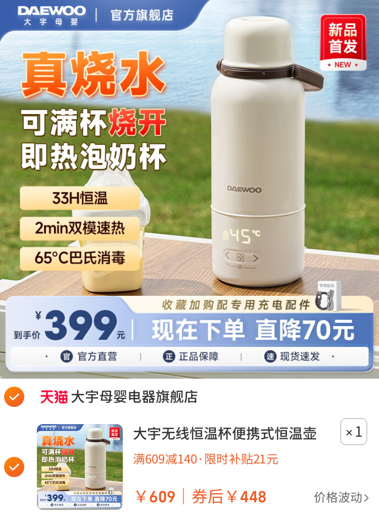 您的位置 :首页 / 优惠券 / 淘宝优惠券 大宇无线恒温杯便携式恒温壶婴儿专用冲奶外出泡奶电热水壶可烧水 到手价:448元 有效时间:长期有效 网购平台:淘宝 去购买 点击复制淘口令 大宇无线恒温杯便携式恒温壶婴儿专用冲奶外出泡奶电热水壶可烧水 【推荐理由】近7天浏览过万,历史热推 【券面额】140元 【到手价】448.00元 【下单链接】38¥ CZ193 0YFif9Q6IPM¥ https://m.tb.cn/h.SGerbCc 大宇无线恒温杯便携式恒温壶婴儿专用冲奶外出泡奶电热水壶可烧水 优惠详情 大宇无线恒温杯便携式恒温壶婴儿专用冲奶外出泡奶电热水壶可烧水 【推荐理由】近7天浏览过万,历史热推 【券面额】140元 【到手价】448.00元 【下单链接】https://s.click.taobao.com/CW2QPep 原图片 上一张 下一张 自动/暂停播放 相关产品 摩摩哒 M613 PRO 家用智 丝飘乳霜纸新生儿宝 维达抽纸24包棉韧压花 卡其猫馥桂兰馨24包商 漫花大包抽纸家用实 【李昀锐同款】清风 活力28香氛洗衣液留香 小漂漂酵素液除菌除 热门标签: 恒温壶大宇 上篇:孕贝奶瓶消毒柜婴儿摇奶器泡奶机恒温水壶三合一体紫外线烘干专用 下篇:【政府补贴】海尔鲜活水PRO1200G净水器厨卫直饮家用净饮机R762 温馨提示:您可查看更多:淘宝优惠券 ,本文链接:https://www.haowubang.net//html/yhq/taobao/6344.html 京东优惠券 海尔16L燃气热水器钜惠1619元 松下(Panasonic)松下按摩椅深米色MAC8 【京东】格力空调 1.5匹云佳pro 新一级能效 变频冷暖壁挂式卧室挂机 新品升级 省电空调 KFR-35GW/NhMa1BG 松下(Panasonic)日本松下按摩椅MAC9 MAC9雾灰蓝 【京东】华凌空调 大1.5匹【大风口】双排神机二代舒适风变频冷暖挂机 超一级能效KFR-35GW/N8HE1Ⅱ国家补贴 进口ASKO雅士高烘洗机500元优惠券领取,更多优惠券在咨询客服 会员充值 送月卡!夸克网盘SVIP超级会员双年卡24个月 【212元】包邮秒杀 【官方直充】迅雷超级会员半年 【88元】包邮秒杀 优质素材:爱奇艺黄金vip年卡12个月/10月卡 福利价仅88.7元秒杀! 优质素材:芒果/优酷年卡会员仅需57 福利价仅57元秒杀! 限购1件网易云音乐黑胶SVIP会员年卡 【96元】包邮秒杀 淘金币抵扣109!爱奇艺黄金vip会员10个月 【107元】包邮秒杀 外卖券 饿了么外卖红包,社群专享,9.9元吃饱喝足 闪购新用户可领首单免单福利 饿了么红包节天天领红包活动 淘宝闪购,爆品好价外卖红包 饿了么18.8极限爆涨红包