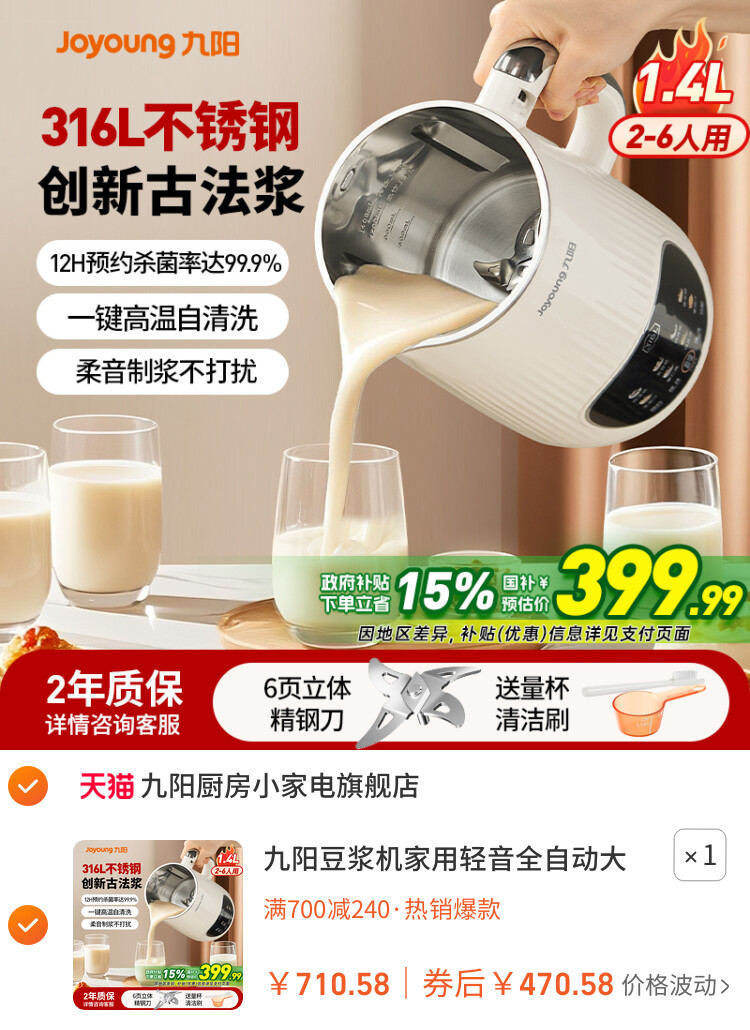 您的位置 :首页 / 优惠券 / 淘宝优惠券 九阳豆浆机家用轻音全自动大容量2025年新款破壁机官方旗舰店D685 到手价:470.58元 有效时间:长期有效 网购平台:淘宝 去购买 点击复制淘口令 九阳豆浆机家用轻音全自动大容量2025年新款破壁机官方旗舰店D685 【推荐理由】热门商品,同类热推 【券面额】240元 【到手价】470.58元 【下单链接】38¥ HU926 XQtXf99FAUI¥ https://m.tb.cn/h.StMzLES 九阳豆浆机家用轻音全自动大容量2025年新款破壁机官方旗舰店D685 优惠详情 九阳豆浆机家用轻音全自动大容量2025年新款破壁机官方旗舰店D685 【推荐理由】热门商品,同类热推 【券面额】240元 【到手价】470.58元 【下单链接】https://s.click.taobao.com/ZS5eMep 原图片 上一张 下一张 自动/暂停播放 相关产品 摩摩哒 M613 PRO 家用智 丝飘乳霜纸新生儿宝 维达抽纸24包棉韧压花 卡其猫馥桂兰馨24包商 漫花大包抽纸家用实 【李昀锐同款】清风 活力28香氛洗衣液留香 小漂漂酵素液除菌除 热门标签: 豆浆机 上篇:电煮锅小型多功能蒸煮煎一体宿舍用泡面小电锅迷你火锅一人食小锅 下篇:小天鹅烘干机小乌梅热泵干衣机【50元】优惠券 温馨提示:您可查看更多:淘宝优惠券 ,本文链接:https://www.haowubang.net//html/yhq/taobao/6370.html 京东优惠券 海尔16L燃气热水器钜惠1619元 松下(Panasonic)松下按摩椅深米色MAC8 【京东】格力空调 1.5匹云佳pro 新一级能效 变频冷暖壁挂式卧室挂机 新品升级 省电空调 KFR-35GW/NhMa1BG 【京东】华凌空调 大1.5匹【大风口】双排神机二代舒适风变频冷暖挂机 超一级能效KFR-35GW/N8HE1Ⅱ国家补贴 进口ASKO雅士高烘洗机500元优惠券领取,更多优惠券在咨询客服 松下(Panasonic)日本松下按摩椅MAC9 MAC9雾灰蓝 会员充值 送月卡!夸克网盘SVIP超级会员双年卡24个月 【212元】包邮秒杀 限购1件网易云音乐黑胶SVIP会员年卡 【96元】包邮秒杀 优质素材:芒果/优酷年卡会员仅需57 福利价仅57元秒杀! 优质素材:爱奇艺黄金vip年卡12个月/10月卡 福利价仅88.7元秒杀! 【官方直充】迅雷超级会员半年 【88元】包邮秒杀 淘金币抵扣109!爱奇艺黄金vip会员10个月 【107元】包邮秒杀 外卖券 饿了么红包节天天领红包活动 闪购新用户可领首单免单福利 饿了么外卖红包,社群专享,9.9元吃饱喝足 饿了么18.8极限爆涨红包 淘宝闪购,爆品好价外卖红包