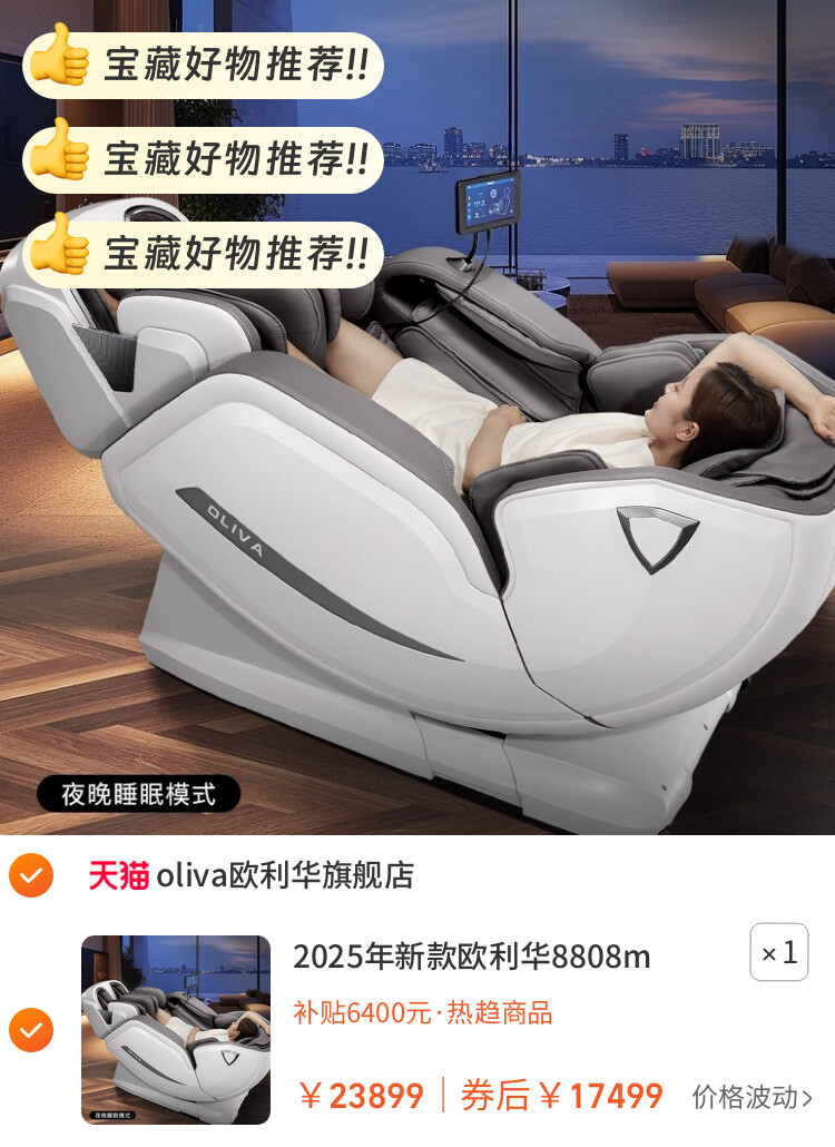 您的位置 :首页 / 优惠券 / 淘宝优惠券 2025年新款欧利华8808max双机芯按摩椅全身豪华太空舱大气囊高端 到手价:17499元 有效时间:长期有效 网购平台:淘宝 去购买 点击复制淘口令 47¥ CZ321 Qo894zoGkjn¥ https://m.tb.cn/h.S5tOXZ9 2025年新款欧利华8808max双机芯按摩椅全身豪华太空舱大气囊高端 优惠详情 2025年新款欧利华8808max双机芯按摩椅全身豪华太空舱大气囊高端 【推荐理由】热趋商品 【到手价】17499.00元 【下单链接】领券购买 原图片 上一张 下一张 自动/暂停播放 相关产品 亿健跑步机家用款大 麦瑞克跑步机家用折 立久佳E9跑步机家用款 舒华马拉松跑步机家 SHUA舒华家用马拉松跑 立久佳X9跑步机家用款 麦瑞克跑步机小型家 麦瑞克幻影X5大坡度护 热门标签: 按摩椅优惠券按摩椅 上篇:奥克斯新款按摩椅家用全身多功能全自动智能小型零重力沙发LH15A 下篇:奥克斯新款音波机芯高端按摩椅家用7D音波机芯家用自动豪华LH35L 温馨提示:您可查看更多:淘宝优惠券 ,本文链接:https://www.haowubang.net//html/yhq/taobao/76.html 京东优惠券 LG83英寸OLED巨幕电视机优惠券,4K超高清120Hz护眼游戏电竞高刷显示杜比视界 摩摩哒按摩椅M600Ultra款150元优惠券+最高补贴15% 慕思(de RUCCI)儿童乳胶床垫优惠券,补贴85折 松下按摩椅150元优惠券领取,到手价7449元 【京东】11.11大促主会场(无线) 西屋(Westinghouse)按摩椅150优惠券,可领取补贴 会员充值 送月卡!夸克网盘SVIP超级会员双年卡24个月 【212元】包邮秒杀 腾讯视频超级影视会员充值vip12个月,福利价仅268元秒杀! 淘宝秒杀:【69元1年】优酷会员12个月 福利价仅69元秒杀! 送双周卡!夸克网盘SVIP超级会员12个月 【112元】包邮秒杀 优质素材:芒果/优酷年卡会员仅需57 福利价仅57元秒杀! 【69元1年】优酷会员vip12个月年卡 券后【69元】包邮秒杀 外卖券 饿了么外卖红包,社群专享,9.9元吃饱喝足 淘宝闪购红包,领最高15元大额红包 淘宝闪购,爆品好价外卖红包 闪购新用户可领首单免单福利 饿了么红包节天天领红包活动