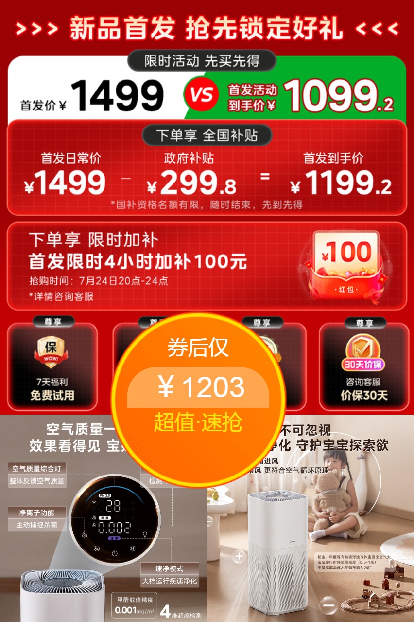 您的位置 :首页 / 秒杀价 热销爆品:美的空气净化器家用室内高效除甲醛 福利价仅1203元秒杀! 券后价1203元 热销爆品:美的空气净化器家用室内高效除甲醛 福利价仅1203元秒杀! 先领【50元优惠券】加购物车 家里有老人小孩,空气清洁太重要啦!美的Air3能高效除甲醛、二手烟、异味和粉尘,还有杀菌功能,让家里空气清新又健康。 领取优惠 下单链接 相关资讯 双11现货:CUCKOO福库韩 双11现货:CUCKOO福库韩 淘金币活动:【全尺 a类水洗棉大豆纤维被 双11现货:儿童牙膏 淘金币活动:【480克 热销爆品:嘭涨!C 热销爆品:嘭涨!C 热门标签: 上篇:双11现货:富士QuickSnap复古一次性胶卷相机 福利价仅89元秒杀! 下篇:双11现货:【到手51】闪魔iPad磁吸双面夹保护壳 福利价仅56.74元秒杀! 温馨提示:您可查看更多:秒杀价 ,本文链接:https://www.haowubang.net//html/miaosha/3507.html 最新优惠 双11现货:CUCKOO福库韩国进口电饭煲 福利价仅1599元秒杀! 双11现货:CUCKOO福库韩国原装进口双压IH高压电饭煲 福利价仅4149元秒杀! 淘金币活动:【全尺寸一个价】简约全水洗棉四件套 福利价仅69.9元秒杀! a类水洗棉大豆纤维被子冬被8斤 券后【79.9元】包邮秒杀 双11现货:儿童牙膏3到12岁含氟换牙期专用宝宝防蛀 福利价仅19.9元秒杀! 淘金币活动:【480克*1袋】奇亚籽手磨黑芝麻糊 福利价仅9.8元秒杀! 热销爆品:嘭涨!CelnoKlarv秋冬暖肌3.0磨毛内衣 福利价仅39.9元秒杀! 猜你喜欢 【9元券】薅纸巾洁柔纸巾抽纸餐巾纸,3层90抽20包整箱卫生纸家用 京东】慕思(de RUCCI)天然乳胶垫慕斯独立筒弹簧防螨床垫 梦觉 1.8*2.0米 【政府补贴15%】云鲸J5Pure扫地机器人扫拖吸三合一体机自动清洗 大包纸巾抽纸家用实惠装卫生纸餐巾纸擦手纸厕纸婴儿面巾纸抽 [纯平全嵌]小天鹅小蓝鲸3.0洗烘套装12KG变频蓝氧滚筒洗衣机E80P 【蓝宝石】西门子滚筒洗烘一体机优惠券,国补到手价4799 【京东】华凌空调 大1.5匹【大风口】双排神机二代舒适风变频冷暖挂机 超一级能效KFR-35GW/N8HE1Ⅱ国家补贴 穗宝乳胶独立弹簧卷压缩床垫薄款软硬两用1.8米双人床 闪睡系列 拼多多官方大促-百秒夺宝活动所有品类覆盖 慕思官方旗舰店青少年进口儿童乳胶床垫十大慕斯名牌护脊硬垫1.5m 穗宝记忆棉床垫可拆洗席梦思家用独立弹簧海绵软硬东方梦流光浮云 百亿补贴:【国补15%】石头扫地机器人拖地一体机 工业冷水机风冷式5P10匹激光注塑模具水循环制冷降温恒温冰水机 慕思(de RUCCI)乳胶床垫床垫1.8x2米 独立筒弹簧双人卧室皇冠假日酒店款床垫 爱永恒舒适款/软硬适中-MCW1-032 漫花30包卫生纸巾原生浆抽纸擦手面巾纸抽家用宿舍餐厅加厚厕纸抽 奥克斯按摩椅淘宝优惠券,面额3000元领取,到手价9980 【百亿补贴1399元】小米官旗米家扫地机器人M30Pro智能一体机家用 千丝肉松饼整箱休闲小吃零食品早餐面包绿豆饼干办公室夜宵食品 【蓝宝石】西门子10公斤滚筒官方变频洗烘一体机全自动洗衣机2X10 [水魔方]小天鹅洗烘套装12KG洗衣机+10KG热泵烘干衣组合618P+02