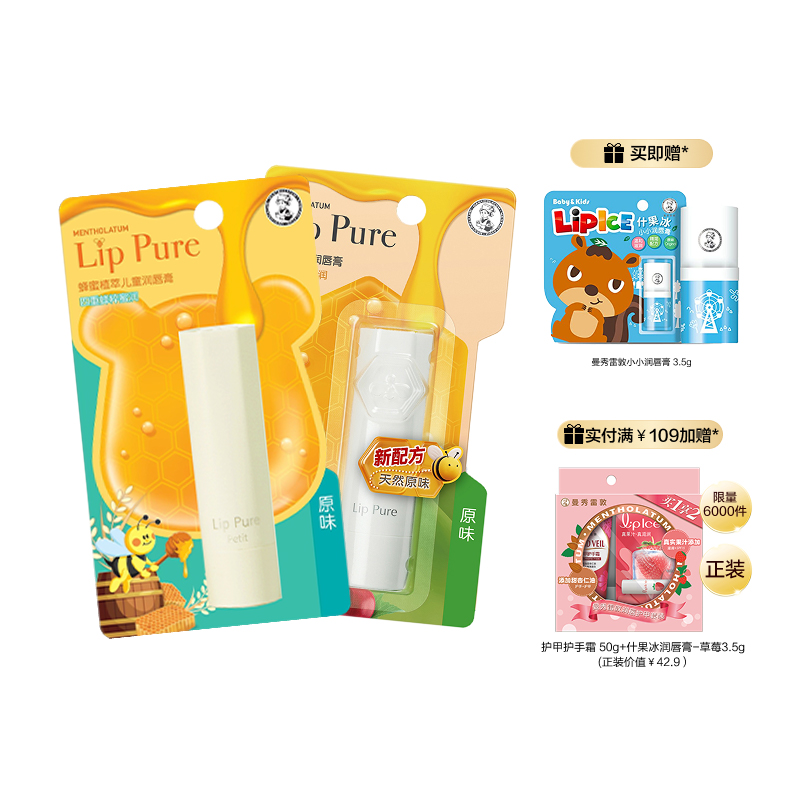 【拍8g儿童+成人组合2支装唇膏加赠小小润唇膏3.5g正装*1支,淘金币抵扣卷后到手44.26元/3支,单只只要15块,叠加88消费卷下单到手更便宜】比线下更便宜!实付满¥109加赠:限量6000件正装护手霜50g+什果冰润唇膏-草莓3.59(正装价值¥42.9)重磅推荐!天然植物食品级润唇膏!温和配方,3重蜂蜜滋润!甄选蜂蜡蜂王浆!曼秀雷敦旗舰正品,护唇保湿滋润防干裂,真正做到了淡化唇纹男女通用