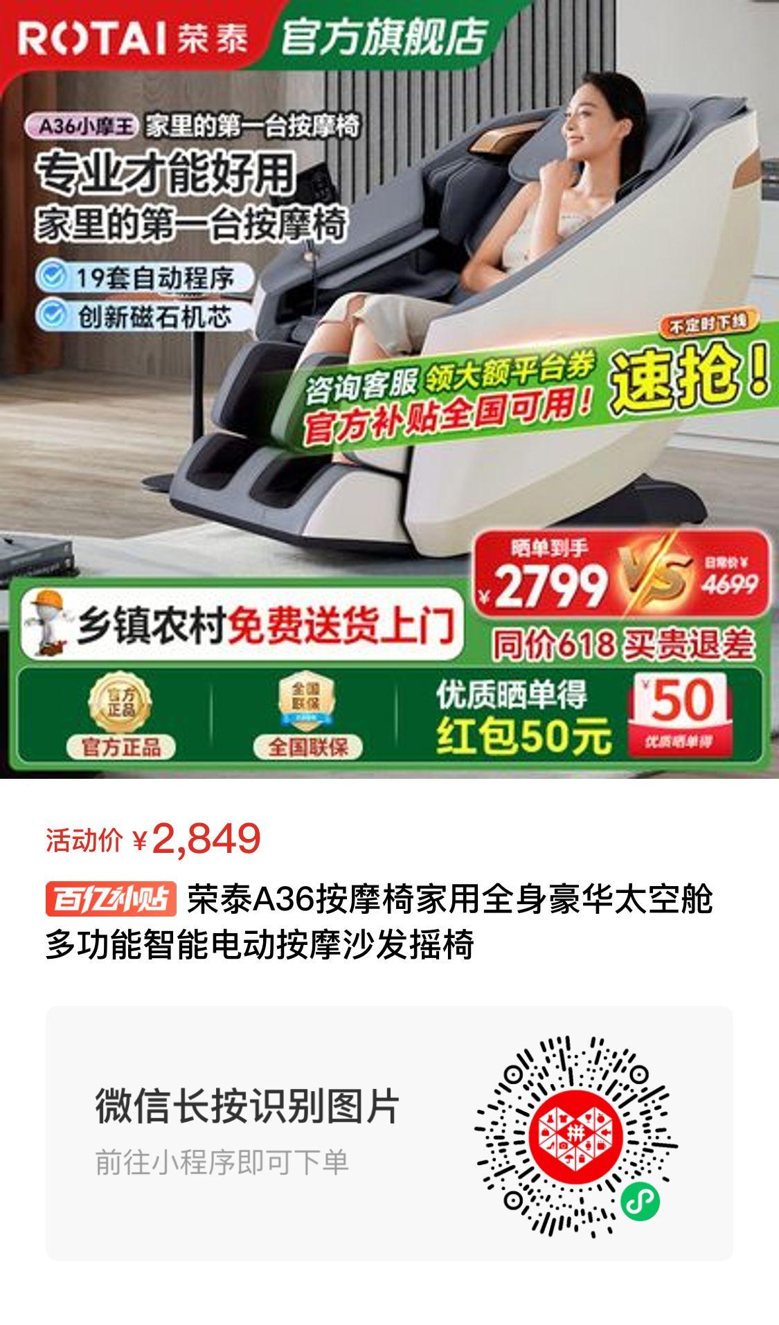 您的位置 :首页 / 优惠券 / 拼多多优惠券 荣泰A36按摩椅家用全身豪华太空舱多功能智能电动按摩沙发摇椅 到手价:元 有效时间: 网购平台:拼多多 领取优惠 优惠详情 荣泰A36按摩椅家用全身豪华太空舱多功能智能电动按摩沙发摇椅 活动价:2849.00元 推荐理由:超划算!不容错过! 商品链接:购买 原图片 上一张 下一张 自动/暂停播放 相关产品 2025全身多功能揉捏智 顾家家居智能电动按 鸣仁堂按摩椅家用豪 奥克斯新款智能按摩 奥克斯2026新款按摩椅 Haier海尔新按摩椅家用 奥克斯按摩椅S500家用 豪华太空舱按摩椅家 热门标签: 按摩椅荣泰按摩椅优惠券国补 上篇:【荣泰直营】A36MAX按摩椅家用全身豪华太空舱电动智能按摩沙发椅 下篇:奥佳华按摩椅家用全身多功能智能太空舱按摩座椅沙发椅7306S+ 温馨提示:您可查看更多:拼多多优惠券 ,本文链接:https://www.haowubang.net//html/yhq/PDD/1347.html 会员充值 送月卡!夸克网盘SVIP超级会员双年卡24个月 【212元】包邮秒杀 送双周卡!夸克网盘SVIP超级会员12个月 【112元】包邮秒杀 优质素材:芒果/优酷年卡会员仅需57 福利价仅57元秒杀! 【69元1年】芒果TV会员年卡 券后【69元】包邮秒杀 爱奇艺vip会员白金12个月年卡 【183.93元】包邮秒杀 淘金币抵扣109!爱奇艺黄金vip会员10个月 【107元】包邮秒杀 推荐优惠 奥克斯SL导轨916A智能按摩椅全自动太空舱电动高端全身多功能沙发 舒华马拉松跑步机家用爬坡阿波罗减震静音中高考室内健身器材E8 可心柔婴儿手口专用湿巾新生儿宝宝湿纸巾湿巾80抽带盖*12包装 沪上阿姨面包小奶砖吐司面包早餐点心便携装牛奶香手撕面包代餐 皇家小虎安格斯牛肉饼谷饲早餐半成品美式汉堡儿童牛肉堡肉饼商用 大希地牛肉馅饼儿童早餐半成品加热即食酥皮牛肉饼早饭煎饼速冻品 打车券 用户可领取8折打车券,单笔交易最高抵扣10元 滴滴打车红包天天领,新人首次打车5折起