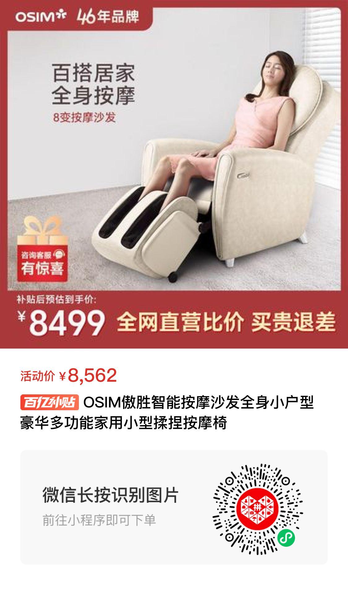 您的位置 :首页 / 优惠券 / 拼多多优惠券 OSIM傲胜智能按摩沙发全身小户型豪华多功能家用小型揉捏按摩椅 到手价:8562元 有效时间:长期有效 网购平台:拼多多 领取优惠 优惠详情 OSIM傲胜智能按摩沙发全身小户型豪华多功能家用小型揉捏按摩椅 活动价:8562.00元 推荐理由:惊喜连连!优质好物,等你来抢! 商品链接:购买 原图片 上一张 下一张 自动/暂停播放 相关产品 2025全身多功能揉捏智 顾家家居智能电动按 鸣仁堂按摩椅家用豪 奥克斯新款智能按摩 奥克斯2026新款按摩椅 Haier海尔新按摩椅家用 奥克斯按摩椅S500家用 豪华太空舱按摩椅家 热门标签: OSIM傲胜傲胜智能按摩沙 上篇:奥克斯新款按摩椅家用全身多功能豪华太空舱中老年智能全自动沙发 下篇:美格仕颈椎按摩器家用全身全自动多功能太空舱智能按摩椅HA-D5 温馨提示:您可查看更多:拼多多优惠券 ,本文链接:https://www.haowubang.net//html/yhq/PDD/1351.html 会员充值 送月卡!夸克网盘SVIP超级会员双年卡24个月 【212元】包邮秒杀 淘金币抵扣109!爱奇艺黄金vip会员10个月 【107元】包邮秒杀 【69元1年】芒果TV会员年卡 券后【69元】包邮秒杀 送双周卡!夸克网盘SVIP超级会员12个月 【112元】包邮秒杀 爱奇艺vip会员白金12个月年卡 【183.93元】包邮秒杀 优质素材:芒果/优酷年卡会员仅需57 福利价仅57元秒杀! 推荐优惠 奥克斯SL导轨916A智能按摩椅全自动太空舱电动高端全身多功能沙发 皇家小虎安格斯牛肉饼谷饲早餐半成品美式汉堡儿童牛肉堡肉饼商用 大希地牛肉馅饼儿童早餐半成品加热即食酥皮牛肉饼早饭煎饼速冻品 舒华马拉松跑步机家用爬坡阿波罗减震静音中高考室内健身器材E8 可心柔婴儿手口专用湿巾新生儿宝宝湿纸巾湿巾80抽带盖*12包装 沪上阿姨面包小奶砖吐司面包早餐点心便携装牛奶香手撕面包代餐 打车券 用户可领取8折打车券,单笔交易最高抵扣10元 滴滴打车红包天天领,新人首次打车5折起