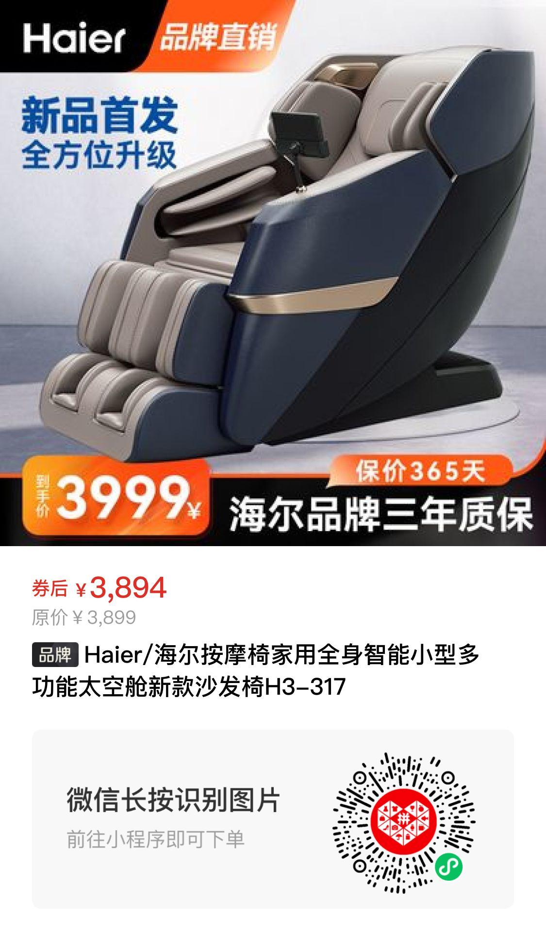 您的位置 :首页 / 优惠券 / 拼多多优惠券 Haier/海尔按摩椅家用全身智能小型多功能太空舱新款沙发椅H3-317 到手价:3894元 有效时间:长期有效 网购平台:拼多多 领取优惠 优惠详情 Haier/海尔按摩椅家用全身智能小型多功能太空舱新款沙发椅H3-317 价格:3899.00元 券后价:3894.00元 推荐理由:限时优惠!抢购热门商品! 商品链接:购买 原图片 上一张 下一张 自动/暂停播放 相关产品 2025全身多功能揉捏智 顾家家居智能电动按 鸣仁堂按摩椅家用豪 奥克斯新款智能按摩 奥克斯2026新款按摩椅 Haier海尔新按摩椅家用 奥克斯按摩椅S500家用 豪华太空舱按摩椅家 热门标签: 按摩椅海尔按摩椅京东按摩椅优惠券 上篇:LINSY林氏家居按摩椅自动多功能4D机芯太空舱电动智能沙发G094 下篇:新款按摩椅家用全身多功能自动豪华太空舱零重力智能语音按摩沙发 温馨提示:您可查看更多:拼多多优惠券 ,本文链接:https://www.haowubang.net//html/yhq/PDD/1354.html 会员充值 送月卡!夸克网盘SVIP超级会员双年卡24个月 【212元】包邮秒杀 【69元1年】优酷会员vip12个月年卡 券后【69元】包邮秒杀 【69元1年】芒果TV会员年卡 券后【69元】包邮秒杀 下拉详情下单!腾讯视频VIP会员12个月 券后【150.32元】包邮秒 淘金币抵扣14.6!爱奇艺vip黄金会员月卡 【14.6元】包邮秒杀 送双周卡!夸克网盘SVIP超级会员12个月 【112元】包邮秒杀 推荐优惠 荣泰A39砂色按摩椅京东旗舰店优惠价4199元 PERDAYS液体钙K2维生素酸奶味孕妇孕孕期专用20条装 松下按摩椅150元优惠券领取,到手价7449元 【全民补贴15%】美的V16Pro扫地机器人扫拖吸一体防缠绕自清洁新 大希地牛肉馅饼儿童早餐半成品加热即食酥皮牛肉饼早饭煎饼速冻品 海尔麦浪X11洗烘套装500元优惠券 打车券 滴滴打车红包天天领,新人首次打车5折起 用户可领取8折打车券,单笔交易最高抵扣10元