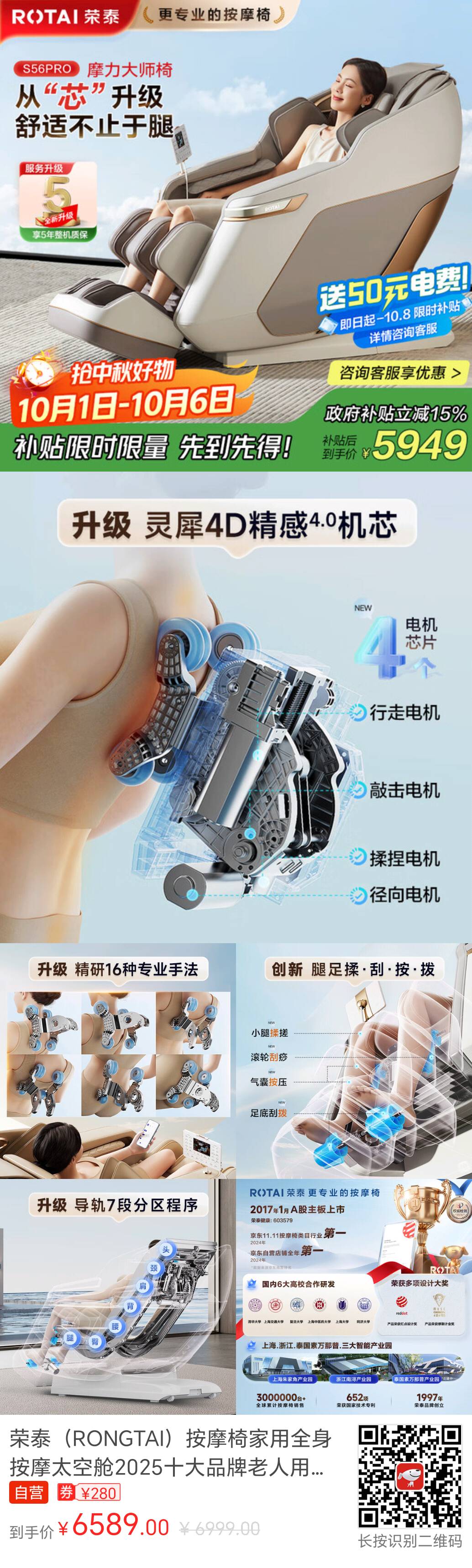 您的位置 :首页 / 优惠券 / 京东优惠券 荣泰按S56pro摩椅280元优惠券领取,到手价6589 到手价:6589元 有效时间:长期有效 网购平台:京东 去购买 点击复制京口令 18:/领280.0元优惠券!抢购荣泰(RONGTAI)按摩椅家用全身按摩太空舱2025十大品牌老人用按摩沙发送父母生日礼物 S56pro 杏仁灰,⇢ 优惠详情 荣泰按S56pro摩椅280元优惠券领取,到手价6589 【京东】荣泰(RONGTAI)按摩椅家用全身按摩太空舱2025十大品牌老人用按摩沙发送父母生日礼物 S56pro 杏仁灰 优惠实情:6999-130(促销)-280(优惠券满2000可用)=6589 ——————— 京东价:¥6999.00 到手价:¥6589.00 推荐理由:给父母最贴心的礼物——荣泰S56pro按摩椅!全身按摩,太空舱体验,京东配送,轻松享受健康生活 原图片 上一张 下一张 自动/暂停播放 相关产品 【京东】穗宝(SYMB [京东]穗宝(SYMBOL) 【京东】TCL京东联名 【京东】格力(GREE) 【京东】华凌空调 大 【京东】格力空调 【京东】华凌空调 大 LG83英寸OLED巨幕电视机 热门标签: 按摩椅荣泰按摩椅优惠券国补 上篇:荣泰(RONGTAI)按摩椅优惠券领取,350元优惠券,到手价350元 下篇:西屋(Westinghouse)按摩椅150优惠券,可领取补贴 温馨提示:您可查看更多:京东优惠券 ,本文链接:https://www.haowubang.net//html/yhq/jingdong/52.html 淘宝优惠券 奥克斯SL导轨916A智能按摩椅全自动太空舱电动高端全身多功能沙发 乐亲真空小奶盾新生儿宝宝奶粉保鲜器防潮密封罐婴幼儿米粉储存罐 亿健ELF跑步机家用款小型可折叠多功能静音家庭式室内健身房专用 慕思床垫 16cm厚高碳钢偏硬弹簧床垫高箱床专用乳胶床垫 麦尼塔UDP900MK2 4K蓝光播放机DVD HIFI发烧级3D影碟数播一体机 【双11立即抢购】欧莱雅男士专用氨基酸洗面奶温和清洁紧致洁面 会员充值 送月卡!夸克网盘SVIP超级会员双年卡24个月 【212元】包邮秒杀 爱奇艺vip会员白金12个月年卡 【183.93元】包邮秒杀 【69元1年】优酷会员vip12个月年卡 券后【69元】包邮秒杀 优质素材:芒果/优酷年卡会员仅需57 福利价仅57元秒杀! 淘宝秒杀:【69元1年】优酷会员12个月 福利价仅69元秒杀! 【官方直充】迅雷超级会员半年 【88元】包邮秒杀 本地生活 必胜客在线点餐点餐最低7折优惠券领取 喜茶优惠券领取,在线点餐全场9.5折 瑞幸咖啡在线点餐优惠券,全场饮品5.5折起 汉堡王优惠券领取,全场8.8折起 星巴克优惠券领取,在线点餐8折优惠 百果园水果外送,满49元包邮,全场优惠9折起 华莱士在线点餐、低至6折起 连锁餐饮优惠券,最低五折起 肯德基单单享低价,优惠点餐5折起 奈雪的茶优惠券领取,在线点餐享受8.8折哦 >