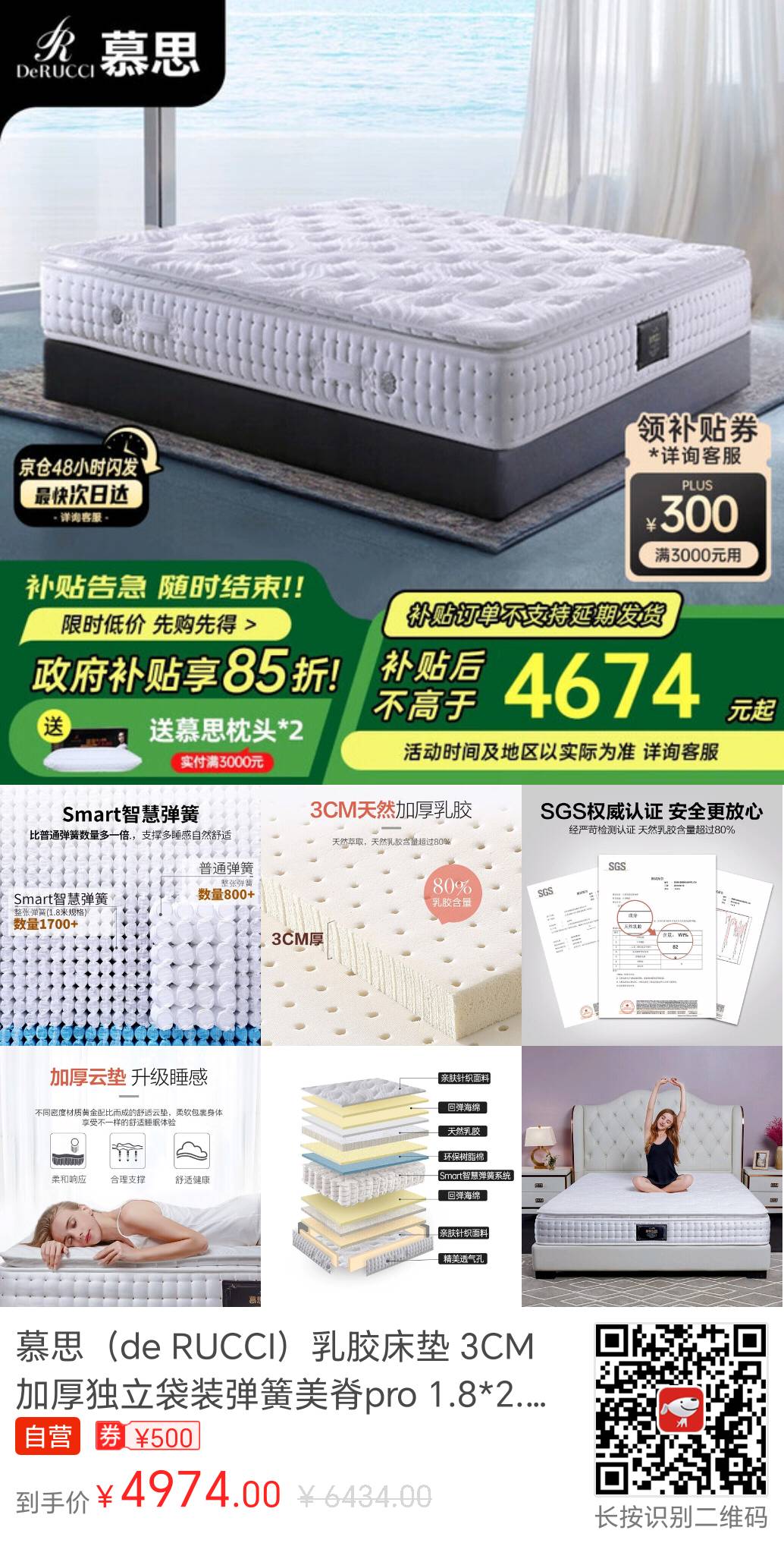 慕思(de RUCCI)乳胶床垫500元优惠券,纯天然乳胶