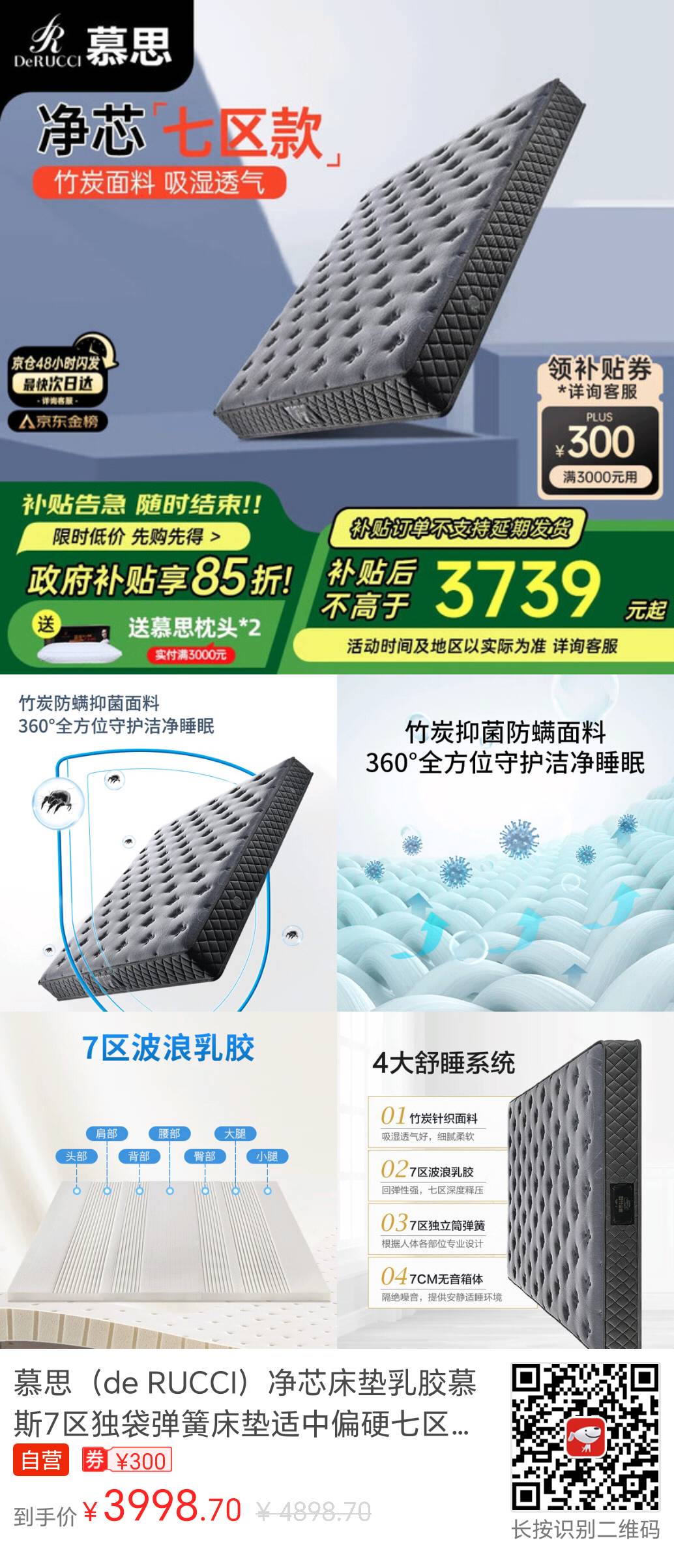 推荐理由:睡眠质量的提升,从选择一张好床垫开始!慕思净芯床垫,采用7区独袋弹簧设计,软硬适中,贴合人体曲线,带来深度睡眠体验。京东配送,安心入睡每一晚。