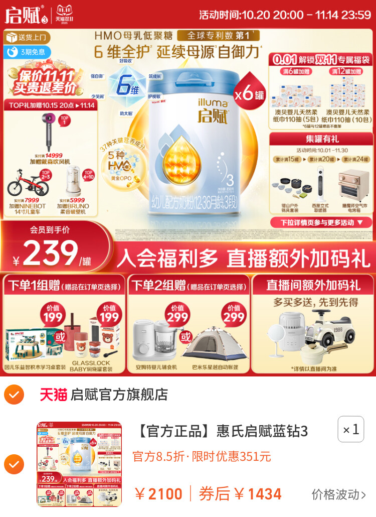 您的位置 :首页 / 优惠券 / 淘宝优惠券 【官方正品】惠氏启赋蓝钻3段HMO+黄金OPO婴幼儿奶粉850g*6罐 到手价:1434元 有效时间:长期有效 网购平台:淘宝 去购买 点击复制淘口令 【官方正品】惠氏启赋蓝钻3段HMO+黄金OPO婴幼儿奶粉850g*6罐 【推荐理由】热门商品,超万人种草 【到手价】1434.00元 【下单链接】58¥ HU108 owCFfdTsWbq¥ https://m.tb.cn/h.SQR7jOt 【官方正品】惠氏启赋蓝钻3段HMO+黄金OPO婴幼儿奶粉850g*6罐 优惠详情 【官方正品】惠氏启赋蓝钻3段HMO+黄金OPO婴幼儿奶粉850g*6罐 【推荐理由】热门商品,超万人种草 【到手价】1434.00元 【下单链接】https://s.click.taobao.com/gqhA8vp 原图片 上一张 下一张 自动/暂停播放 相关产品 【官方正品】惠氏启 【0元试喝】伊利金领 爱他美卓傲幼儿配方 蒙牛铂金装中老年奶 飞鹤经典1962中老年奶 【自营】澳洲原装进 贝特恩蓝一号进口新 爱他美白金德文版升 热门标签: 奶粉惠氏启赋 上篇:【0元试喝】伊利金领冠珍护1段0-6个月婴儿牛奶粉130g 下篇:暂无 温馨提示:您可查看更多:淘宝优惠券 ,本文链接:https://www.haowubang.net//html/yhq/taobao/1818.html 京东优惠券 【京东】穗宝(SYMBOL)3D山棕床垫宝耐尔弹簧床垫健脊防螨 亲爱嘚1.8米*2米(京仓闪发) 京东顾家家居按摩椅7折优惠,到手价才2543元 西屋S710按摩椅150元优惠券,补贴最高15% 米家小米按摩椅150元优惠券,到手价6849元 慕思(de RUCCI)天然乳胶卷300元优惠券,券后申请补贴85折 京东ASKO雅士高进口洗烘套装2000元促销券领取 会员充值 送月卡!夸克网盘SVIP超级会员双年卡24个月 【212元】包邮秒杀 【69元1年】优酷会员vip12个月年卡 券后【69元】包邮秒杀 【69元1年】优酷会员vip12个月年卡 券后【69元】包邮秒杀 腾讯视频超级影视会员充值vip12个月,福利价仅268元秒杀! 优质素材:爱奇艺黄金vip年卡12个月/10月卡 福利价仅88.7元秒杀! 下拉详情下单!腾讯视频VIP会员12个月 券后【150.32元】包邮秒 外卖券 饿了么18.8极限爆涨红包 饿了么霸王餐红包,评价有礼单单返 饿了么红包节天天领红包活动 淘宝闪购红包,领最高15元大额红包 饿了么外卖红包,社群专享,9.9元吃饱喝足