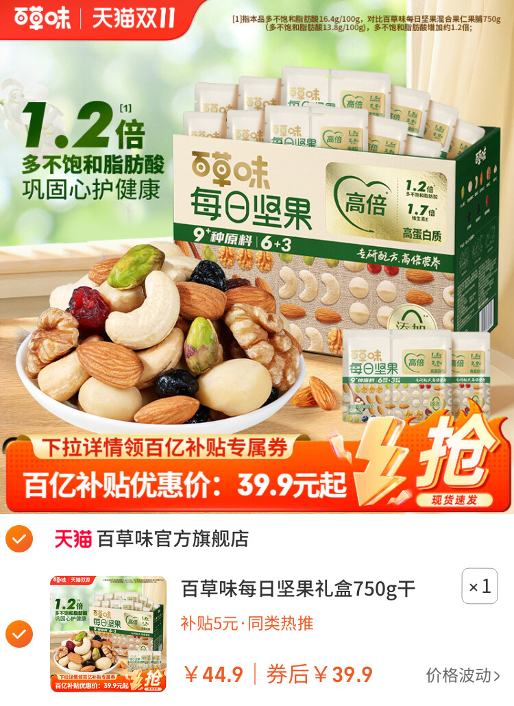 您的位置 :首页 / 优惠券 / 淘宝优惠券 百草味每日坚果礼盒750g干果混合健康孕妇零食大礼包早餐健康果仁 到手价:39.9元 有效时间:长期有效 网购平台:淘宝 去购买 点击复制淘口令 百草味每日坚果礼盒750g干果混合健康孕妇零食大礼包早餐健康果仁 【推荐理由】品牌高佣,热门商品 【到手价】39.90元 【下单链接】28¥ tG-#22>lD GnQhfWwJyI8¥ https://m.tb.cn/h.SkknQh9 百草味每日坚果礼盒750g干果混合健康孕妇零食大礼包早餐健康果仁 优惠详情 百草味每日坚果礼盒750g干果混合健康孕妇零食大礼包早餐健康果仁 【推荐理由】品牌高佣,热门商品 【到手价】39.90元 【下单链接】https://s.click.taobao.com/dbhVCtp 原图片 上一张 下一张 自动/暂停播放 相关产品 德国wigomat唯咖美半自 意大利Quick Mill进口 【焕新补贴】格米莱 [纯平全嵌]小天鹅本色 新品IQ500 西门子 小幸 [政府补贴不限区域 [纯平全嵌]小天鹅小蓝 海信电视E7Q 100英寸 热门标签: 上篇:【达人直播】自然堂小紫瓶第六代精华紧致淡纹敏肌适用 下篇:十月结晶婴儿宝宝幼童专用新生儿沐浴露润肤乳护肤面霜爽身粉套装 温馨提示:您可查看更多:淘宝优惠券 ,本文链接:https://www.haowubang.net//html/yhq/taobao/2030.html 京东优惠券 【京东】穗宝(SYMBOL)3D山棕床垫宝耐尔弹簧床垫健脊防螨 亲爱嘚1.8米*2米(京仓闪发) 慕思乳进口胶床垫300元优惠券领取,还可以享受国家补贴85折 西屋(Westinghouse)S570按摩椅150元优惠券+最高补贴115% 小天鹅(LittleSwan)波轮洗衣机175元优惠券领取 京东荣泰按摩椅A52Max款530元优惠券,最高补贴15% 京东奥佳华按摩椅优惠券300元领取,最高补贴15% 会员充值 送月卡!夸克网盘SVIP超级会员双年卡24个月 【212元】包邮秒杀 淘金币抵扣14.6!爱奇艺vip黄金会员月卡 【14.6元】包邮秒杀 【69元1年】优酷会员vip12个月年卡 券后【69元】包邮秒杀 【69元1年】优酷会员vip12个月年卡 券后【69元】包邮秒杀 淘金币抵扣109!爱奇艺黄金vip会员10个月 【107元】包邮秒杀 送月卡!夸克网盘SVIP超级会员双年卡24个月 【212元】包邮秒杀 外卖券 饿了么红包节天天领红包活动 淘宝闪购红包,领最高15元大额红包 饿了么18.8极限爆涨红包 饿了么霸王餐红包,评价有礼单单返 饿了么外卖红包,社群专享,9.9元吃饱喝足