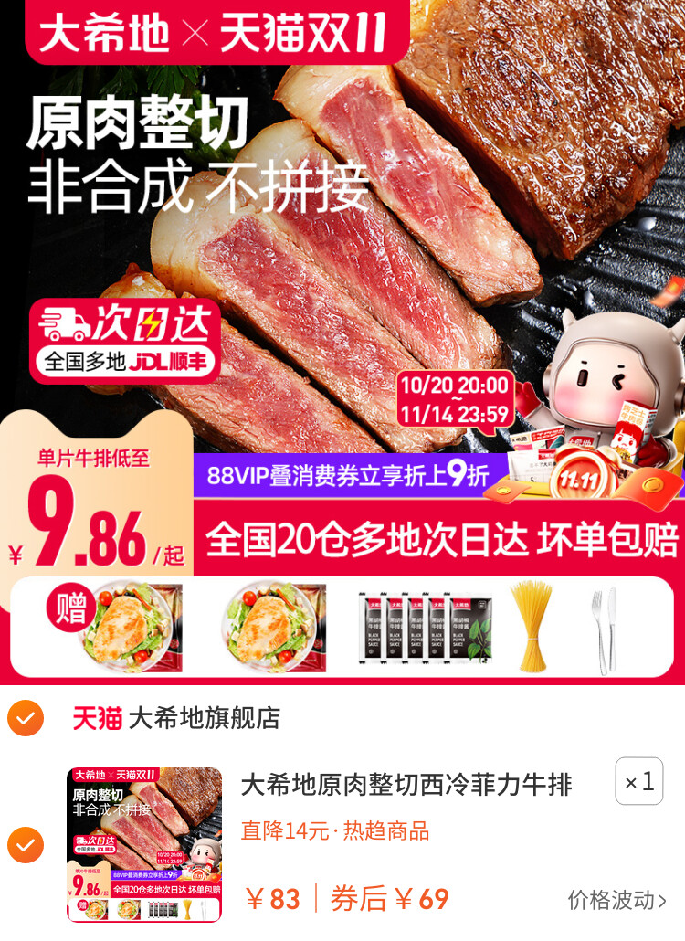 您的位置 :首页 / 优惠券 / 淘宝优惠券 大希地原肉整切西冷菲力牛排儿童黑椒牛扒新鲜牛肉套餐官方旗舰店 到手价:69元 有效时间:长期有效 网购平台:淘宝 去购买 点击复制淘口令 大希地原肉整切西冷菲力牛排儿童黑椒牛扒新鲜牛肉套餐官方旗舰店 【推荐理由】店内高佣 【到手价】69.00元 【下单链接】58¥ CZ057 RgcTfWwF64b¥ https://m.tb.cn/h.SPe3q83 大希地原肉整切西冷菲力牛排儿童黑椒牛扒新鲜牛肉套餐官方旗舰店 优惠详情 大希地原肉整切西冷菲力牛排儿童黑椒牛扒新鲜牛肉套餐官方旗舰店 【推荐理由】店内高佣 【到手价】69.00元 【下单链接】https://s.click.taobao.com/JsEbj5q 原图片 上一张 下一张 自动/暂停播放 相关产品 德国wigomat唯咖美半自 意大利Quick Mill进口 【焕新补贴】格米莱 [纯平全嵌]小天鹅本色 新品IQ500 西门子 小幸 [政府补贴不限区域 [纯平全嵌]小天鹅小蓝 海信电视E7Q 100英寸 热门标签: 上篇:十月结晶婴儿宝宝幼童专用新生儿沐浴露润肤乳护肤面霜爽身粉套装 下篇:Wanpy顽皮冻干双鲜猫粮幼猫小猫咪成猫增肥发腮营养通用全价猫粮 温馨提示:您可查看更多:淘宝优惠券 ,本文链接:https://www.haowubang.net//html/yhq/taobao/2032.html 京东优惠券 【京东】穗宝(SYMBOL)3D山棕床垫宝耐尔弹簧床垫健脊防螨 亲爱嘚1.8米*2米(京仓闪发) 西屋(Westinghouse)S570按摩椅150元优惠券+最高补贴115% 京东荣泰按摩椅A52Max款530元优惠券,最高补贴15% 小天鹅(LittleSwan)波轮洗衣机175元优惠券领取 京东奥佳华按摩椅优惠券300元领取,最高补贴15% 慕思乳进口胶床垫300元优惠券领取,还可以享受国家补贴85折 会员充值 送月卡!夸克网盘SVIP超级会员双年卡24个月 【212元】包邮秒杀 淘金币抵扣14.6!爱奇艺vip黄金会员月卡 【14.6元】包邮秒杀 淘金币抵扣109!爱奇艺黄金vip会员10个月 【107元】包邮秒杀 【69元1年】优酷会员vip12个月年卡 券后【69元】包邮秒杀 【69元1年】优酷会员vip12个月年卡 券后【69元】包邮秒杀 送月卡!夸克网盘SVIP超级会员双年卡24个月 【212元】包邮秒杀 外卖券 饿了么红包节天天领红包活动 饿了么外卖红包,社群专享,9.9元吃饱喝足 饿了么18.8极限爆涨红包 淘宝闪购红包,领最高15元大额红包 饿了么霸王餐红包,评价有礼单单返