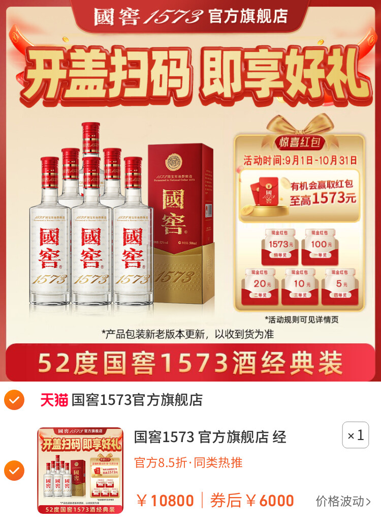 国窖1573 官方旗舰店 经典装52度500ml*6 浓香型白酒 过节送礼