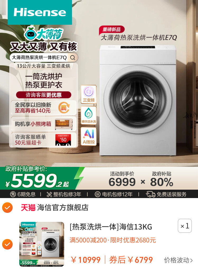 您的位置 :首页 / 优惠券 / 淘宝优惠券 海信滚筒洗衣机优惠券领取,到手价6799 到手价:6799元 有效时间:长期有效 网购平台:淘宝 去购买 点击复制淘口令 97¥ CZ321 6k1e4Bq6omv¥ https://m.tb.cn/h.S5d00ZB [热泵洗烘一体]海信13KG大容量滚筒洗衣机全自动三变频活水洗E7Q 优惠详情 [热泵洗烘一体]海信13KG大容量滚筒洗衣机全自动三变频活水洗E7Q 【推荐理由】同类高佣,热门商品 【券面额】200元 【到手价】6799.00元 【下单链接】点击购买 原图片 上一张 下一张 自动/暂停播放 相关产品 奥克斯SL导轨916A智能 奥克斯2025新款按摩椅 OSIM傲胜V2家用全身全 【政府补贴15%】奥佳 【政府补贴15%】A39按 OSIM傲胜V3按摩椅家用 荣泰S56Pro按摩椅全身 【政府补贴15%】奥佳 热门标签: 洗衣机优惠券洗衣机海信洗衣机 上篇:三星AI神洗衣机5系洗衣机优惠券,政府补贴到手价5799 下篇:海尔麦浪X11洗烘套装淘宝优惠券5000元面额领取 温馨提示:您可查看更多:淘宝优惠券 ,本文链接:https://www.haowubang.net//html/yhq/taobao/24.html 京东优惠券 【京东】穗宝(SYMBOL)3D山棕床垫宝耐尔弹簧床垫健脊防螨 亲爱嘚1.8米*2米(京仓闪发) 西屋(Westinghouse)S570按摩椅150元优惠券+最高补贴115% 米家小米按摩椅150元优惠券,到手价6849元 ASKO雅士高欧洲进口洗烘套装无胶圈金属门封洗衣机+蒸汽净衣烘干衣机 慕思(de RUCCI)乳胶床垫床垫1.8x2米 独立筒弹簧双人卧室皇冠假日酒店款床垫 爱永恒舒适款/软硬适中-MCW1-032 京东慕思(de RUCCI)纯天然乳胶床垫,300元优惠券领取 会员充值 送月卡!夸克网盘SVIP超级会员双年卡24个月 【212元】包邮秒杀 送月卡!夸克网盘SVIP超级会员双年卡24个月 【212元】包邮秒杀 腾讯视频超级影视会员充值vip12个月,福利价仅268元秒杀! 爱奇艺vip会员白金12个月年卡 【183.93元】包邮秒杀 【69元1年】优酷会员vip12个月年卡 券后【69元】包邮秒杀 送双周卡!夸克网盘SVIP超级会员12个月 【112元】包邮秒杀 外卖券 饿了么百元红包,开学饿请客 高校超吃卡 饿了么18.8极限爆涨红包 淘宝闪购红包,领最高15元大额红包 饿了么外卖红包,社群专享,9.9元吃饱喝足 饿了么红包节天天领红包活动
