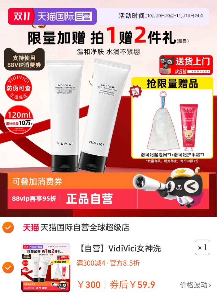 您的位置 :首页 / 优惠券 / 淘宝优惠券 【自营】VidiVici女神洗面奶120ml韩国氨基酸洁面乳温和深层清洁 到手价:59.9元 有效时间:长期有效 网购平台:淘宝 去购买 点击复制淘口令 【自营】VidiVici女神洗面奶120ml韩国氨基酸洁面乳温和深层清洁 【推荐理由】同类热推 【券面额】4元 【到手价】59.90元 【下单链接】89¥ CZ225 Ubzjf5kSyKv¥ https://m.tb.cn/h.Snyh4TS 【自营】VidiVici女神洗面奶120ml韩国氨基酸洁面乳温和深层清洁 优惠详情 【自营】VidiVici女神洗面奶120ml韩国氨基酸洁面乳温和深层清洁 【推荐理由】同类热推 【券面额】4元 【到手价】59.90元 【下单链接】https://s.click.taobao.com/0y8U9xp 原图片 上一张 下一张 自动/暂停播放 相关产品 乐亲真空小奶盾新生 大包纸巾抽纸家用实 十月结晶小太阳柔润 小熊加湿器家用大雾 高爷家全价低温烘焙 【李佳琦直播间现货 小鱼干小河鱼猫咪零 弗列加特0乳糖鲜肉烘 热门标签: 上篇:【全民补贴15%】美的V16Pro扫地机器人扫拖吸一体防缠绕自清洁新 下篇:PETSHY百宠千爱 原味混合猫砂结团除臭低尘可冲厕猫砂2.5kg*10包 温馨提示:您可查看更多:淘宝优惠券 ,本文链接:https://www.haowubang.net//html/yhq/taobao/3181.html 京东优惠券 【京东】穗宝(SYMBOL)3D山棕床垫宝耐尔弹簧床垫健脊防螨 亲爱嘚1.8米*2米(京仓闪发) 双十一大促主会场 京东慕思乳胶床垫300元优惠券领取 京东东芝冰箱500元优惠券领取+最高20%补贴 慕思(de RUCCI)天然乳胶卷300元优惠券,券后申请补贴85折 松下按摩椅150元优惠券领取,到手价7449元 会员充值 送月卡!夸克网盘SVIP超级会员双年卡24个月 【212元】包邮秒杀 【官方直充】迅雷超级会员半年 【88元】包邮秒杀 送双周卡!夸克网盘SVIP超级会员12个月 【112元】包邮秒杀 限购1件网易云音乐黑胶SVIP会员年卡 【96元】包邮秒杀 优质素材:芒果/优酷年卡会员仅需57 福利价仅57元秒杀! 优质素材:爱奇艺黄金vip年卡12个月/10月卡 福利价仅88.7元秒杀! 外卖券 饿了么红包节天天领红包活动 饿了么霸王餐红包,评价有礼单单返 淘宝闪购红包,领最高15元大额红包 饿了么外卖红包,社群专享,9.9元吃饱喝足 饿了么18.8极限爆涨红包