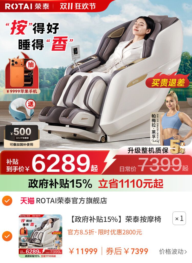 您的位置 :首页 / 优惠券 / 淘宝优惠券 【政府补贴15%】荣泰按摩椅全身太空舱多功能豪华按摩沙发A52MAX 到手价:7399元 有效时间:长期有效 网购平台:淘宝 去购买 点击复制淘口令 【政府补贴15%】荣泰按摩椅全身太空舱多功能豪华按摩沙发A52MAX 【推荐理由】超万人正在疯抢,同类热推 【到手价】7399.00元 【下单链接】09¥ MF287 ddBPfg94IbS¥ https://m.tb.cn/h.Sow915j 【政府补贴15%】荣泰按摩椅全身太空舱多功能豪华按摩沙发A52MAX 优惠详情 【政府补贴15%】荣泰按摩椅全身太空舱多功能豪华按摩沙发A52MAX 【推荐理由】超万人正在疯抢,同类热推 【到手价】7399.00元 【下单链接】https://s.click.taobao.com/J3nNqvp 原图片 上一张 下一张 自动/暂停播放 相关产品 【政府补贴15%】A39按 OSIM傲胜V3按摩椅家用 荣泰S56Pro按摩椅全身 【政府补贴15%】奥佳 荣泰A52/Pro/MAX按摩椅家 奥佳华7508Pro+按摩椅家 【政府补贴15%】奥佳 【政府补贴15%】荣泰 热门标签: 按摩椅荣泰按摩椅优惠券国补荣泰按摩椅 上篇:【政府补贴15%】荣泰A60MAX按摩机器人家用全身全自动豪华按摩椅 下篇:【政府补贴15%】奥佳华按摩椅家用全身电动太空舱按摩沙发椅X9Pro 温馨提示:您可查看更多:淘宝优惠券 ,本文链接:https://www.haowubang.net//html/yhq/taobao/4078.html 京东优惠券 【京东】穗宝(SYMBOL)3D山棕床垫宝耐尔弹簧床垫健脊防螨 亲爱嘚1.8米*2米(京仓闪发) 海尔冰箱优惠券700元领取,国家以旧换新最高补贴20%, ASKO雅士高欧洲进口洗烘套装优惠券领取 京东顾家家居按摩椅7折优惠,到手价才2543元 长虹空调优惠券领取,大1匹新一级省电 【京东】喜临门泰国柔感乳胶双层弹簧床垫300优惠券 会员充值 送月卡!夸克网盘SVIP超级会员双年卡24个月 【212元】包邮秒杀 【69元1年】优酷会员vip12个月年卡 券后【69元】包邮秒杀 爱奇艺vip会员白金12个月年卡 【183.93元】包邮秒杀 送月卡!夸克网盘SVIP超级会员双年卡24个月 【212元】包邮秒杀 送双周卡!夸克网盘SVIP超级会员12个月 【112元】包邮秒杀 腾讯视频超级影视会员充值vip12个月,福利价仅268元秒杀! 外卖券 饿了么18.8极限爆涨红包 饿了么百元红包,开学饿请客 高校超吃卡 饿了么外卖红包,社群专享,9.9元吃饱喝足 淘宝闪购,爆品好价外卖红包 闪购新用户可领首单免单福利