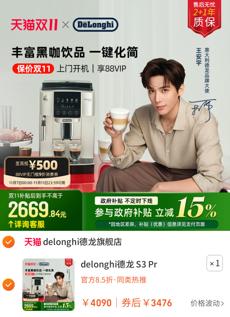 delonghi德龙 S3 Pro 全自动咖啡机意式进口家用现磨办公室小型