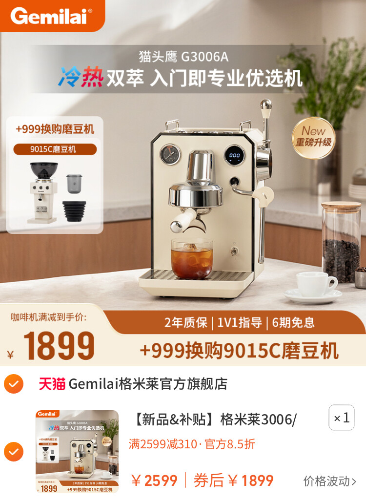 您的位置 :首页 / 优惠券 / 淘宝优惠券 格米莱半自动咖啡机310元优惠券 到手价:1899元 有效时间:长期有效 网购平台:淘宝 去购买 点击复制淘口令 【新品&补贴】格米莱3006/A猫头鹰小型家用半自动咖啡机意式冷萃 【推荐理由】超万人正在疯抢,同类热推 【券面额】310元 【到手价】1899.00元 【下单链接】98¥ MF168 PiBnf7zEvGH¥ https://m.tb.cn/h.SJ1M18m 【新品&补贴】格米莱3006/A猫头鹰小型家用半自动咖啡机意式冷萃 优惠详情 【新品&补贴】格米莱3006/A猫头鹰小型家用半自动咖啡机意式冷萃 【推荐理由】超万人正在疯抢,同类热推 【券面额】310元 【到手价】1899.00元 【下单链接】https://s.click.taobao.com/M6dVsnp 原图片 上一张 下一张 自动/暂停播放 相关产品 Barsetto百胜图3SAP冷萃 Barsetto/百胜图2SAP冷萃 格米莱白鲸3035ABC半自 飞利浦咖啡机意式小 露茉Solar咖啡机小型咖 艾摩客Aeomjk/CM5580机械 delonghi德龙半自动咖啡 格米莱半自动咖啡机 热门标签: 咖啡机格米莱 上篇:柏翠海盐小方咖啡机601元优惠券 下篇:delonghi德龙半自动咖啡机307元优惠券 温馨提示:您可查看更多:淘宝优惠券 ,本文链接:https://www.haowubang.net//html/yhq/taobao/5123.html 京东优惠券 【京东】穗宝(SYMBOL)3D山棕床垫宝耐尔弹簧床垫健脊防螨 亲爱嘚1.8米*2米(京仓闪发) 京东奥佳华按摩椅优惠券300元领取,最高补贴15% 【京东】格力空调 1.5匹云佳pro 新一级能效 变频冷暖壁挂式卧室挂机 新品升级 省电空调 KFR-35GW/NhMa1BG 海尔冰箱优惠券700元领取,国家以旧换新最高补贴20%, [京东]穗宝(SYMBOL) 弹簧床垫100元优惠券 京东】慕思(de RUCCI)天然乳胶垫慕斯独立筒弹簧防螨床垫 梦觉 1.8*2.0米 会员充值 送月卡!夸克网盘SVIP超级会员双年卡24个月 【212元】包邮秒杀 下拉详情下单!腾讯视频VIP会员12个月 券后【150.32元】包邮秒 爱奇艺vip会员白金12个月年卡 【183.93元】包邮秒杀 送月卡!夸克网盘SVIP超级会员双年卡24个月 【212元】包邮秒杀 淘金币抵扣14.6!爱奇艺vip黄金会员月卡 【14.6元】包邮秒杀 优质素材:芒果/优酷年卡会员仅需57 福利价仅57元秒杀! 外卖券 饿了么百元红包,开学饿请客 高校超吃卡 闪购新用户可领首单免单福利 饿了么18.8极限爆涨红包 饿了么外卖红包,社群专享,9.9元吃饱喝足 饿了么霸王餐红包,评价有礼单单返