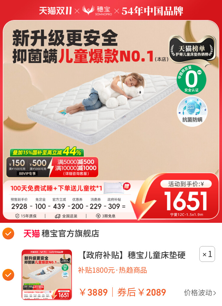 您的位置 :首页 / 优惠券 / 淘宝优惠券 【政府补贴】穗宝儿童床垫硬护脊防螨弹簧席梦思1.5米榻榻米宁爱 到手价:2089元 有效时间:长期有效 网购平台:淘宝 去购买 点击复制淘口令 【政府补贴】穗宝儿童床垫硬护脊防螨弹簧席梦思1.5米榻榻米宁爱 【推荐理由】历史热推 【到手价】2089.00元 【下单链接】48¥ MF287 su4bf0EjWxE¥ https://m.tb.cn/h.SSQJIxF 【政府补贴】穗宝儿童床垫硬护脊防螨弹簧席梦思1.5米榻榻米宁爱 优惠详情 【政府补贴】穗宝儿童床垫硬护脊防螨弹簧席梦思1.5米榻榻米宁爱 【推荐理由】历史热推 【到手价】2089.00元 【下单链接】https://s.click.taobao.com/GMqDV4q 原图片 上一张 下一张 自动/暂停播放 相关产品 奥克斯SL导轨916A智能 奥克斯2025新款按摩椅 OSIM傲胜V2家用全身全 【政府补贴15%】奥佳 【政府补贴15%】A39按 OSIM傲胜V3按摩椅家用 荣泰S56Pro按摩椅全身 【政府补贴15%】奥佳 热门标签: 穗宝床垫 上篇:【政府补贴】穗宝乳胶床垫席梦思弹簧家用加厚天然椰棕棕垫东方梦 下篇:【政府补贴】穗宝弹簧1.8米家用成人双人床席梦思护脊床垫 堪培拉 温馨提示:您可查看更多:淘宝优惠券 ,本文链接:https://www.haowubang.net//html/yhq/taobao/561.html 京东优惠券 【京东】穗宝(SYMBOL)3D山棕床垫宝耐尔弹簧床垫健脊防螨 亲爱嘚1.8米*2米(京仓闪发) 西屋(Westinghouse)S570按摩椅150元优惠券+最高补贴115% 京东慕思(de RUCCI)纯天然乳胶床垫,300元优惠券领取 慕思(de RUCCI)乳胶床垫床垫1.8x2米 独立筒弹簧双人卧室皇冠假日酒店款床垫 爱永恒舒适款/软硬适中-MCW1-032 米家小米按摩椅150元优惠券,到手价6849元 ASKO雅士高欧洲进口洗烘套装无胶圈金属门封洗衣机+蒸汽净衣烘干衣机 会员充值 送月卡!夸克网盘SVIP超级会员双年卡24个月 【212元】包邮秒杀 送双周卡!夸克网盘SVIP超级会员12个月 【112元】包邮秒杀 爱奇艺vip会员白金12个月年卡 【183.93元】包邮秒杀 【69元1年】优酷会员vip12个月年卡 券后【69元】包邮秒杀 送月卡!夸克网盘SVIP超级会员双年卡24个月 【212元】包邮秒杀 腾讯视频超级影视会员充值vip12个月,福利价仅268元秒杀! 外卖券 饿了么18.8极限爆涨红包 饿了么红包节天天领红包活动 饿了么外卖红包,社群专享,9.9元吃饱喝足 淘宝闪购红包,领最高15元大额红包 饿了么百元红包,开学饿请客 高校超吃卡