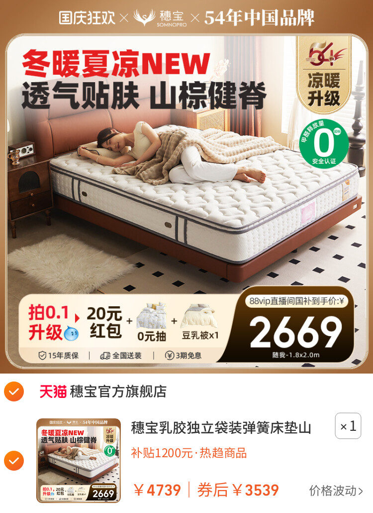 您的位置 :首页 / 优惠券 / 淘宝优惠券 穗宝乳胶独立袋装弹簧床垫山棕硬席梦思1.8m成人定制20cm jm系列 到手价:元 有效时间: 网购平台:淘宝 去购买 点击复制淘口令 优惠详情 穗宝乳胶独立袋装弹簧床垫山棕硬席梦思1.8m成人定制20cm jm系列 【推荐理由】热门商品,同类热推 【到手价】3539.00元 【下单链接】https://s.click.taobao.com/zm90v 原图片 上一张 下一张 自动/暂停播放 相关产品 奥克斯SL导轨916A智能 奥克斯2025新款按摩椅 OSIM傲胜V2家用全身全 【政府补贴15%】奥佳 【政府补贴15%】A39按 OSIM傲胜V3按摩椅家用 荣泰S56Pro按摩椅全身 【政府补贴15%】奥佳 热门标签: 上篇:穗宝儿童青年护脊椎整网弹簧乳胶席梦思床垫1.5 1.2米床 仙踪系列 下篇:穗宝床垫艾草环保榻榻米椰棕硬垫护脊老人小孩抑菌棕垫盛典6c10c 温馨提示:您可查看更多:淘宝优惠券 ,本文链接:https://www.haowubang.net//html/yhq/taobao/569.html 京东优惠券 【京东】穗宝(SYMBOL)3D山棕床垫宝耐尔弹簧床垫健脊防螨 亲爱嘚1.8米*2米(京仓闪发) 京东慕思(de RUCCI)纯天然乳胶床垫,300元优惠券领取 慕思(de RUCCI)乳胶床垫床垫1.8x2米 独立筒弹簧双人卧室皇冠假日酒店款床垫 爱永恒舒适款/软硬适中-MCW1-032 米家小米按摩椅150元优惠券,到手价6849元 西屋(Westinghouse)S570按摩椅150元优惠券+最高补贴115% ASKO雅士高欧洲进口洗烘套装无胶圈金属门封洗衣机+蒸汽净衣烘干衣机 会员充值 送月卡!夸克网盘SVIP超级会员双年卡24个月 【212元】包邮秒杀 【69元1年】优酷会员vip12个月年卡 券后【69元】包邮秒杀 送双周卡!夸克网盘SVIP超级会员12个月 【112元】包邮秒杀 腾讯视频超级影视会员充值vip12个月,福利价仅268元秒杀! 爱奇艺vip会员白金12个月年卡 【183.93元】包邮秒杀 送月卡!夸克网盘SVIP超级会员双年卡24个月 【212元】包邮秒杀 外卖券 饿了么百元红包,开学饿请客 高校超吃卡 淘宝闪购红包,领最高15元大额红包 饿了么红包节天天领红包活动 饿了么外卖红包,社群专享,9.9元吃饱喝足 饿了么18.8极限爆涨红包