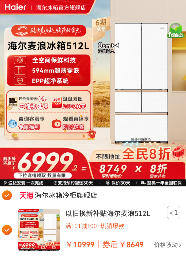 您的位置 :首页 / 优惠券 / 淘宝优惠券 海尔麦浪嵌入式冰箱淘宝100元优惠券 到手价:8649元 有效时间:长期有效 网购平台:淘宝 去购买 点击复制淘口令 以旧换新补贴海尔麦浪512L法式双开超薄嵌入式冰箱家用无霜一级 【推荐理由】近期热门,超千人正在疯抢 【券面额】100元 【到手价】8649.00元 【下单链接】17¥ CZ007 RlMbf9aaa8S¥ https://m.tb.cn/h.StXty9r 以旧换新补贴海尔麦浪512L法式双开超薄嵌入式冰箱家用无霜一级 优惠详情 以旧换新补贴海尔麦浪512L法式双开超薄嵌入式冰箱家用无霜一级 【推荐理由】近期热门,超千人正在疯抢 【券面额】100元 【到手价】8649.00元 【下单链接】https://s.click.taobao.com/vjOIzSp 原图片 上一张 下一张 自动/暂停播放 相关产品 卡萨帝揽光制冰电冰 【政府补贴20%】新品 TCL冷布丁嵌全自动制 海尔小红花制冰电冰 美的家用小型冰箱淘 海尔麦浪嵌入式冰箱 卡萨帝揽光家用电冰 海尔冰箱以旧换新补 热门标签: 冰箱优惠券优惠券海尔冰箱 上篇:TCL冷布丁制冰电冰箱淘宝300元优惠券 下篇:海尔485山茶花法式双开薄零嵌入式冰箱100元优惠券 温馨提示:您可查看更多:淘宝优惠券 ,本文链接:https://www.haowubang.net//html/yhq/taobao/6191.html 京东优惠券 语森忆意大利ROKERT火箭R58咖啡机 慕思乳进口胶床垫300元优惠券领取,还可以享受国家补贴85折 京东】慕思(de RUCCI)天然乳胶垫慕斯独立筒弹簧防螨床垫 梦觉 1.8*2.0米 慕思(de RUCCI)乳胶床垫500优惠券领取,铂尔曼总统套房款 【京东】格力(GREE)3匹 天仪 一级能效 变频冷暖 净菌自洁 出风口可拆洗 立柜式空调柜机 KFR-72LW/(72504)FNhAa-B1 京东奥克斯(AUX)按摩椅2025新款150元优惠券,到手机2230元 会员充值 送月卡!夸克网盘SVIP超级会员双年卡24个月 【212元】包邮秒杀 送月卡!夸克网盘SVIP超级会员双年卡24个月 【212元】包邮秒杀 优质素材:芒果/优酷年卡会员仅需57 福利价仅57元秒杀! 淘宝秒杀:【学生专享卡45】腾讯视频VIP会员三个月 福利价仅45元秒杀 淘金币抵扣109!爱奇艺黄金vip会员10个月 【107元】包邮秒杀 【69元1年】优酷会员vip12个月年卡 券后【69元】包邮秒杀 外卖券 闪购新用户可领首单免单福利 饿了么18.8极限爆涨红包 饿了么外卖红包,社群专享,9.9元吃饱喝足 淘宝闪购,爆品好价外卖红包 淘宝闪购红包,领最高15元大额红包