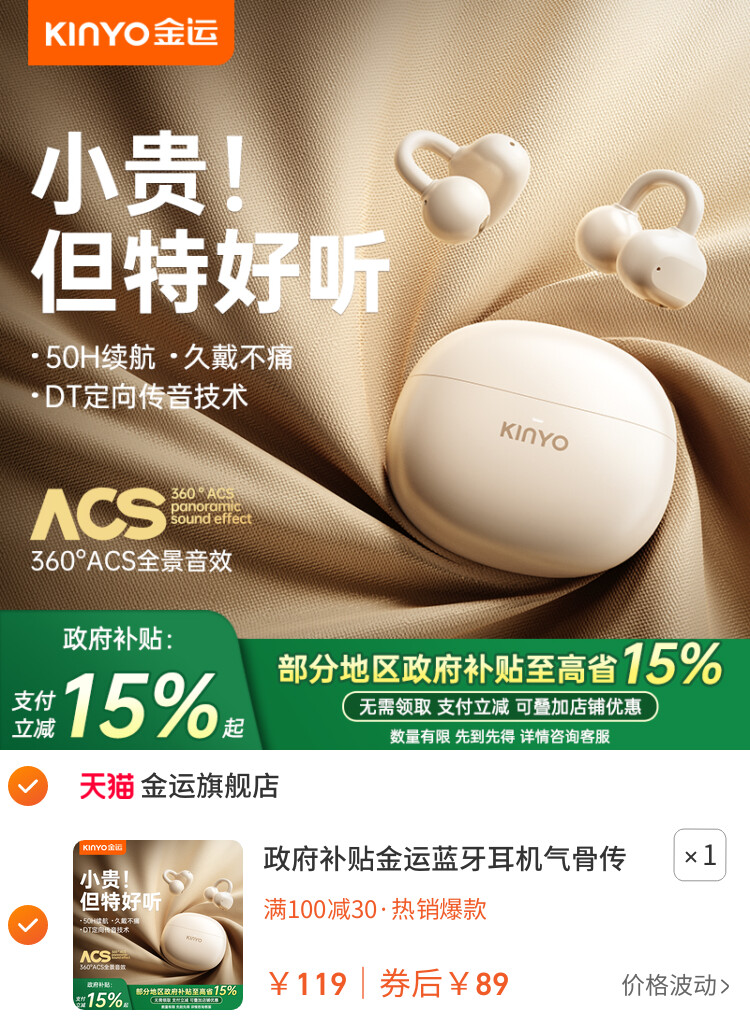 您的位置 :首页 / 优惠券 / 淘宝优惠券 政府补贴金运蓝牙耳机气骨传导运动不入耳无线耳夹式挂耳2025新款 到手价:89元 有效时间:长期有效 网购平台:淘宝 去购买 点击复制淘口令 政府补贴金运蓝牙耳机气骨传导运动不入耳无线耳夹式挂耳2025新款 【推荐理由】近7天浏览过万,历史热推 【券面额】30元 【到手价】89.00元 【下单链接】77¥ HU287 2zTYf9j1Fp8¥ https://m.tb.cn/h.SG3jPSx 政府补贴金运蓝牙耳机气骨传导运动不入耳无线耳夹式挂耳2025新款 优惠详情 政府补贴金运蓝牙耳机气骨传导运动不入耳无线耳夹式挂耳2025新款 【推荐理由】近7天浏览过万,历史热推 【券面额】30元 【到手价】89.00元 【下单链接】https://s.click.taobao.com/XV5oBSp 原图片 上一张 下一张 自动/暂停播放 相关产品 摩摩哒 M613 PRO 家用智 丝飘乳霜纸新生儿宝 维达抽纸24包棉韧压花 卡其猫馥桂兰馨24包商 漫花大包抽纸家用实 【李昀锐同款】清风 活力28香氛洗衣液留香 小漂漂酵素液除菌除 热门标签: 蓝牙耳机,政府补贴 上篇:碧然德过滤水壶晨汐壶1壶12芯套组 下篇:美的空气炸锅家用新款电烤箱电炸锅一体免翻面可视大容量烹饪机 温馨提示:您可查看更多:淘宝优惠券 ,本文链接:https://www.haowubang.net//html/yhq/taobao/6326.html 京东优惠券 海尔16L燃气热水器钜惠1619元 进口ASKO雅士高烘洗机500元优惠券领取,更多优惠券在咨询客服 【京东】格力空调 1.5匹云佳pro 新一级能效 变频冷暖壁挂式卧室挂机 新品升级 省电空调 KFR-35GW/NhMa1BG 松下(Panasonic)日本松下按摩椅MAC9 MAC9雾灰蓝 松下(Panasonic)松下按摩椅深米色MAC8 【京东】华凌空调 大1.5匹【大风口】双排神机二代舒适风变频冷暖挂机 超一级能效KFR-35GW/N8HE1Ⅱ国家补贴 会员充值 送月卡!夸克网盘SVIP超级会员双年卡24个月 【212元】包邮秒杀 淘金币抵扣109!爱奇艺黄金vip会员10个月 【107元】包邮秒杀 优质素材:芒果/优酷年卡会员仅需57 福利价仅57元秒杀! 限购1件网易云音乐黑胶SVIP会员年卡 【96元】包邮秒杀 优质素材:爱奇艺黄金vip年卡12个月/10月卡 福利价仅88.7元秒杀! 【官方直充】迅雷超级会员半年 【88元】包邮秒杀 外卖券 淘宝闪购,爆品好价外卖红包 饿了么红包节天天领红包活动 饿了么18.8极限爆涨红包 闪购新用户可领首单免单福利 饿了么外卖红包,社群专享,9.9元吃饱喝足